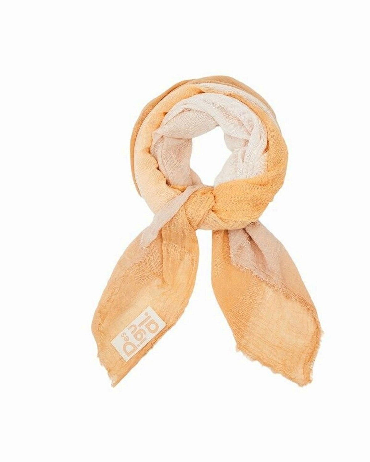 This fabric rectangle foulard features a stylish design in shades of beige, crude, and white. Crafted from quality fabric, it offers a versatile accessory option. Its rectangular shape makes it easy to drape or tie in various styles, adding a touch of elegance to any outfit. The subtle color palette enhances its adaptability, suitable for both casual and formal occasions. Lightweight and comfortable to wear, this foulard is a practical addition to your wardrobe. Its simple yet sophisticated design makes it a timeless accessory that complements a variety of looks. Perfect for adding a refined touch to your ensemble, it can be styled in multiple ways to suit your personal taste. Whether worn around the neck, as a headscarf, or tied to a bag, this foulard provides a chic finishing touch. Its classic design and neutral colors ensure it remains a versatile piece for everyday wear.
