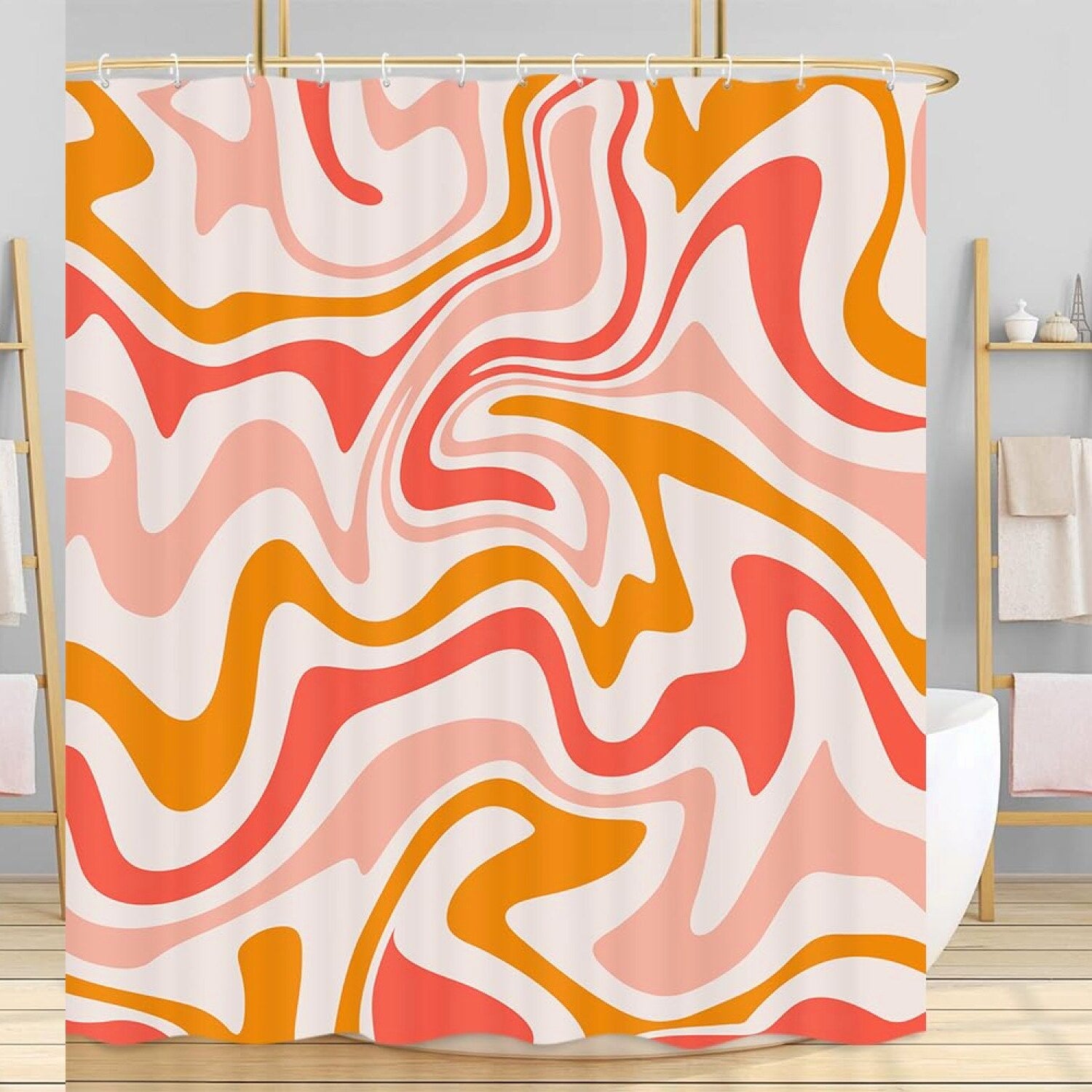This shower curtain features an abstract swirl design inspired by vintage 70s and 80s aesthetics, with vibrant colors that add a fresh look to your bathroom decor. Made from durable material, it measures 72x72 inches and includes hooks for easy installation. Its versatile design allows it to be used as wallpaper, a backdrop, window curtain, dust cover, wall tapestry, or as a decorative element in kitchens or bedrooms. The pattern showcases a groovy retro spiral swirl in pastel tones, creating a minimal yet eye-catching aesthetic suitable for teen girls or those who enjoy a boho vibe. Perfect for holiday or special occasion decor, it also makes a thoughtful gift for weddings, birthdays, or Thanksgiving. Please note slight deviations in size and color may occur due to manual measurement and monitor differences. If any issues arise, customer service is available to assist.