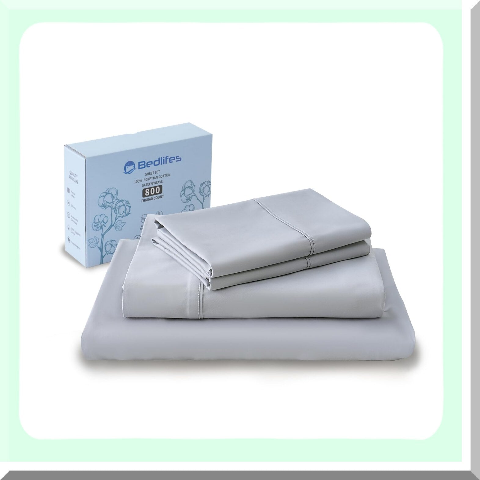 Luxury Cool Breeze Full Size Cotton Sheets - 800 Thread Count Soft Sateen Weave Hotel Sheets - Breathable & Cooling - Light Grey - 4 Piece Set