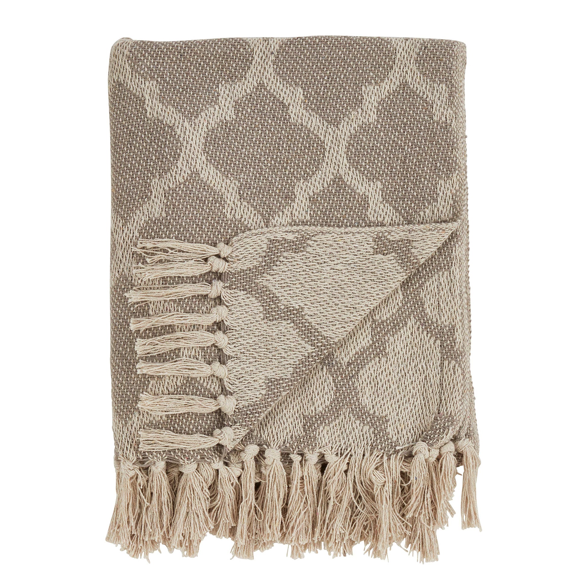 Use this chic Moroccan tile throw in your bedroom or your living room and you will obtain a stunning effect. It features a unique tile pattern and short tels for the trim. The natural, quiet tones make it easy to pair with throw pillows and accent pieces.