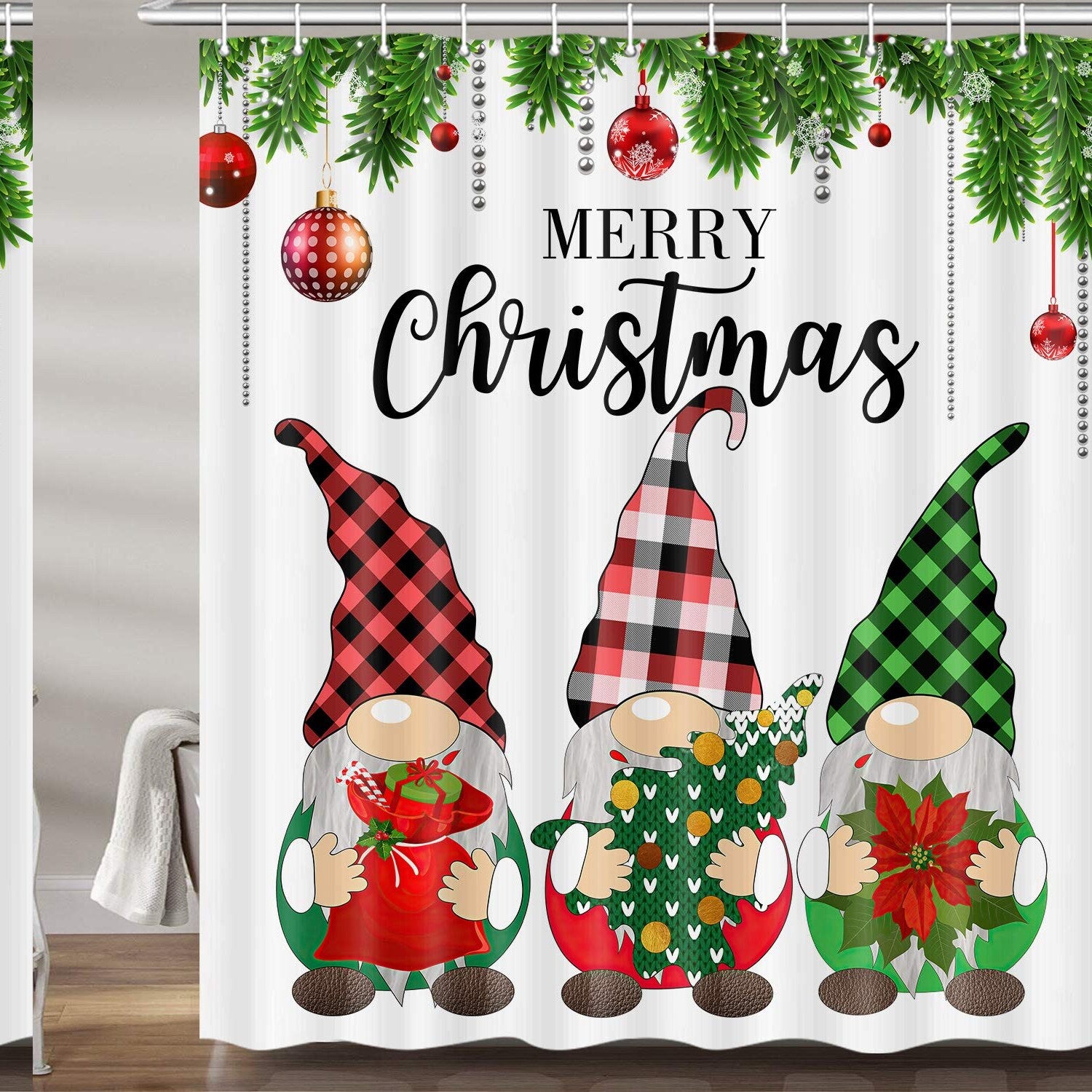 This shower curtain set features a charming winter holiday theme with a buffalo check plaid pattern in white fabric. Designed to refresh your bathroom decor effortlessly, it offers a quick and stylish transformation for any bathroom, powder room, or guest suite. Made from polyester with high-resolution thermal printing technology, the curtains are durable and vibrant. The set includes 12 hooks for easy installation. Available in four sizes—36x72 inches, 47x64 inches, 69x75 inches, and 72x72 inches—you can select the perfect fit for your space. Please note that manual measurement may result in a 1-2 cm discrepancy, and color variations may occur due to monitor differences. This decorative curtain is an ideal addition to enhance your bathroom ambiance with a festive touch, making it a thoughtful gift for loved ones or a delightful upgrade for your own home.