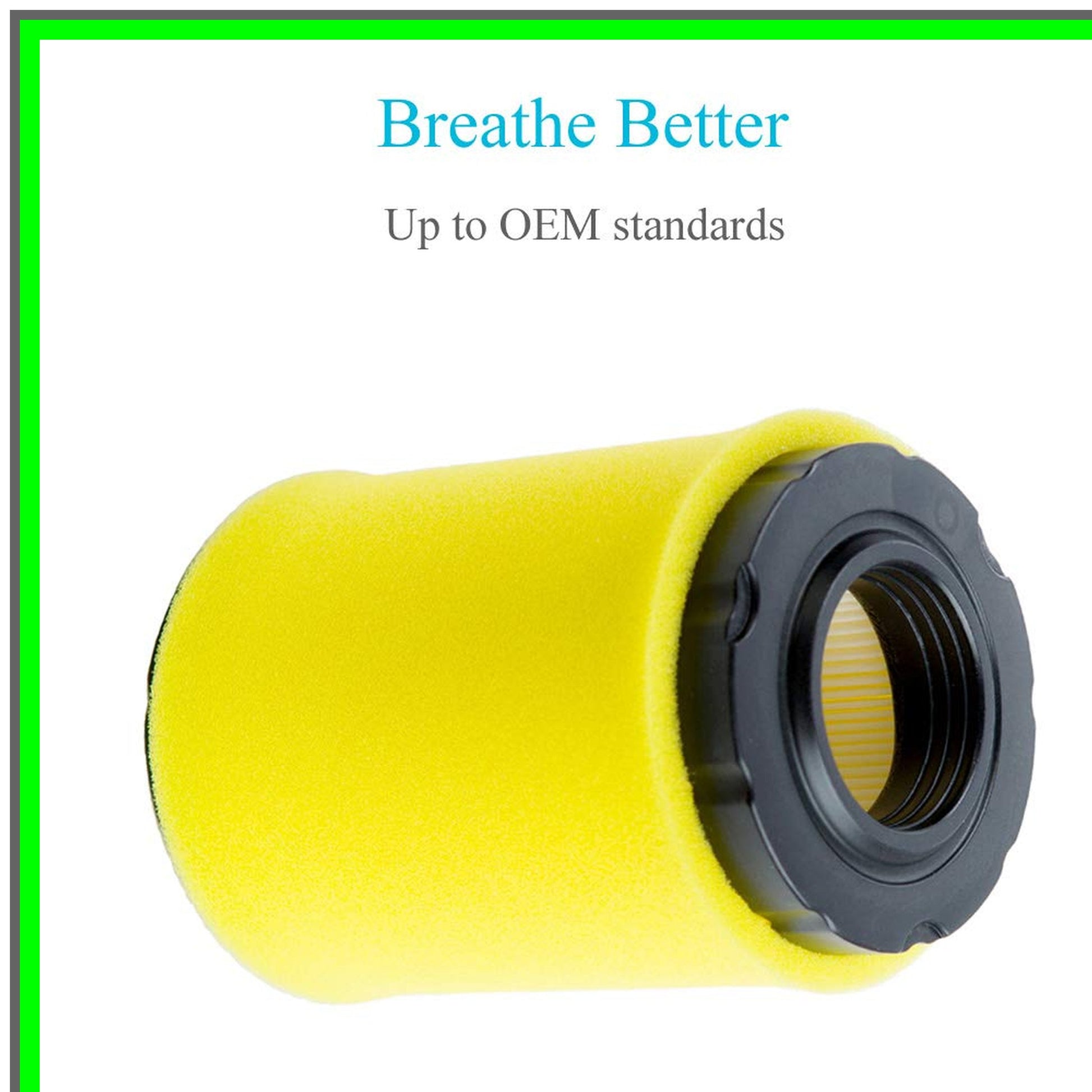 Revitalize your engine's performance with our premium filter kit, designed to ensure optimal functionality for a range of outdoor power equipment. This comprehensive set includes an air filter, oil filter, fuel filter, and essential accessories, all crafted to meet and exceed OEM standards for quality and reliability.**Air Filter Specifications:** Measuring 5 inches in height with an outer diameter of 3 inches and an inner diameter of 1-1/2 inches, this air filter is engineered to trap dirt and debris, promoting cleaner air intake and enhancing engine efficiency. **Oil Filter Details:** With a height of 2-1/4 inches and an outside diameter of 3 inches, this oil filter features a seal outside diameter of 2-13/16 inches and a metric thread of 3/4"-16. Designed to maintain optimal oil flow, it operates under a relief pressure of 8-11 PSI, ensuring your engine runs smoothly and efficiently.**Fuel Filter Features:** This fuel filter is compatible with a 1/4" inside diameter fuel line and effectively captures particles down to 40 microns, safeguarding your engine from harmful contaminants and ensuring a steady fuel supply.**Compatibility:** This filter kit is compatible with a variety of Briggs and Stratton models, including the 797704, 5428K, and 5421 air filters, as well as select Kawasaki engines like the FX691V and FX730V. Itβs perfect for riding lawn mowers and tractors such as the D140, D170, and X300 series.**Quality Assurance:** Each component in this kit is factory-tested to guarantee performance that rivals genuine parts. **Package Includes:** 1 air filter, 1 foam pre-cleaner, 1 oil filter, 1 fuel filter, 1 fuel shut-off valve, and 2 fuel line clamps.Upgrade your maintenance routine with this all-in-one filter kit and experience the difference in your engine's performance!