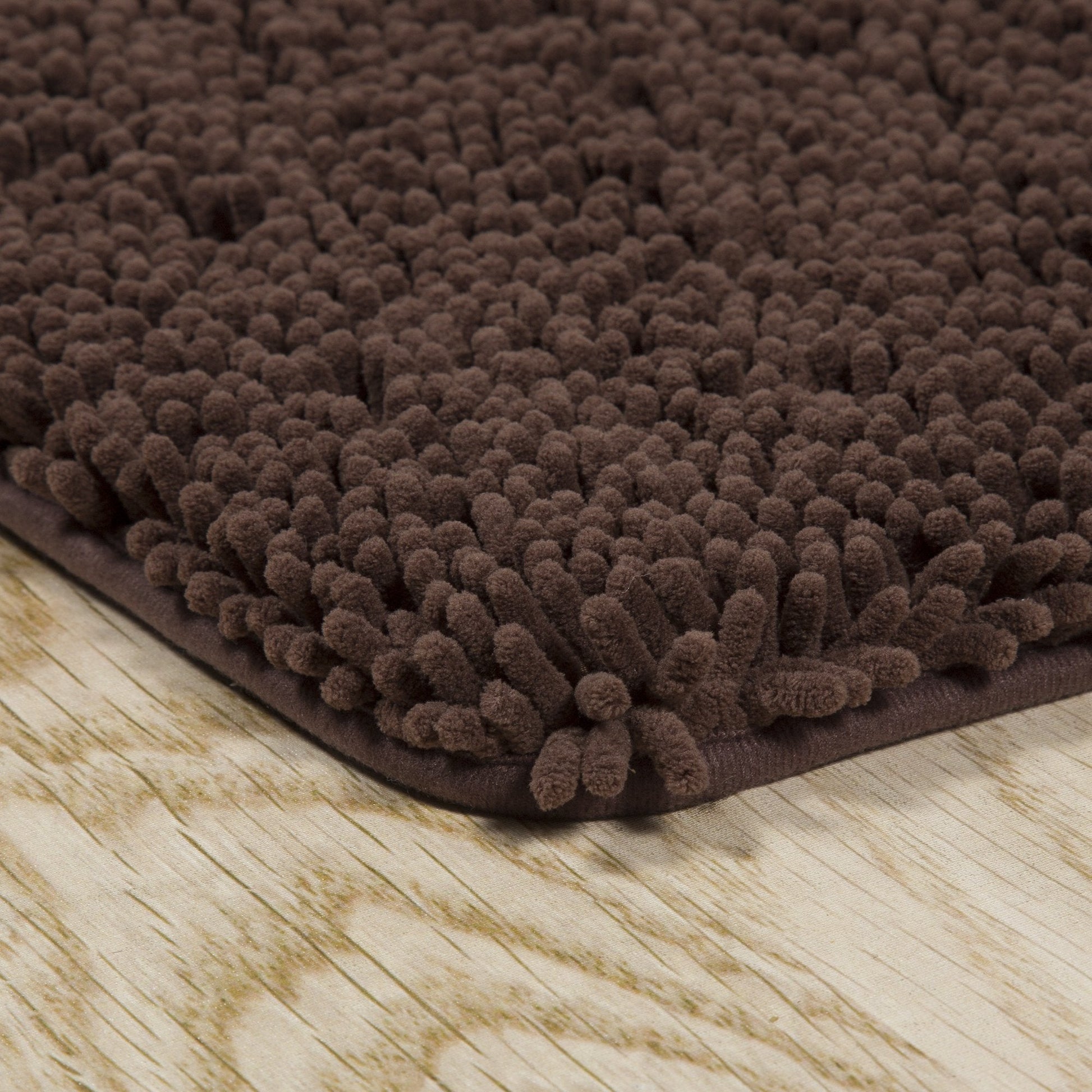 Shag e ory Foa Bath at - 58-Inch by 24-Inch Runner with Non-Slip B ing - Absorbent h-Pile Chenille Bathroo Rug (Choc e)