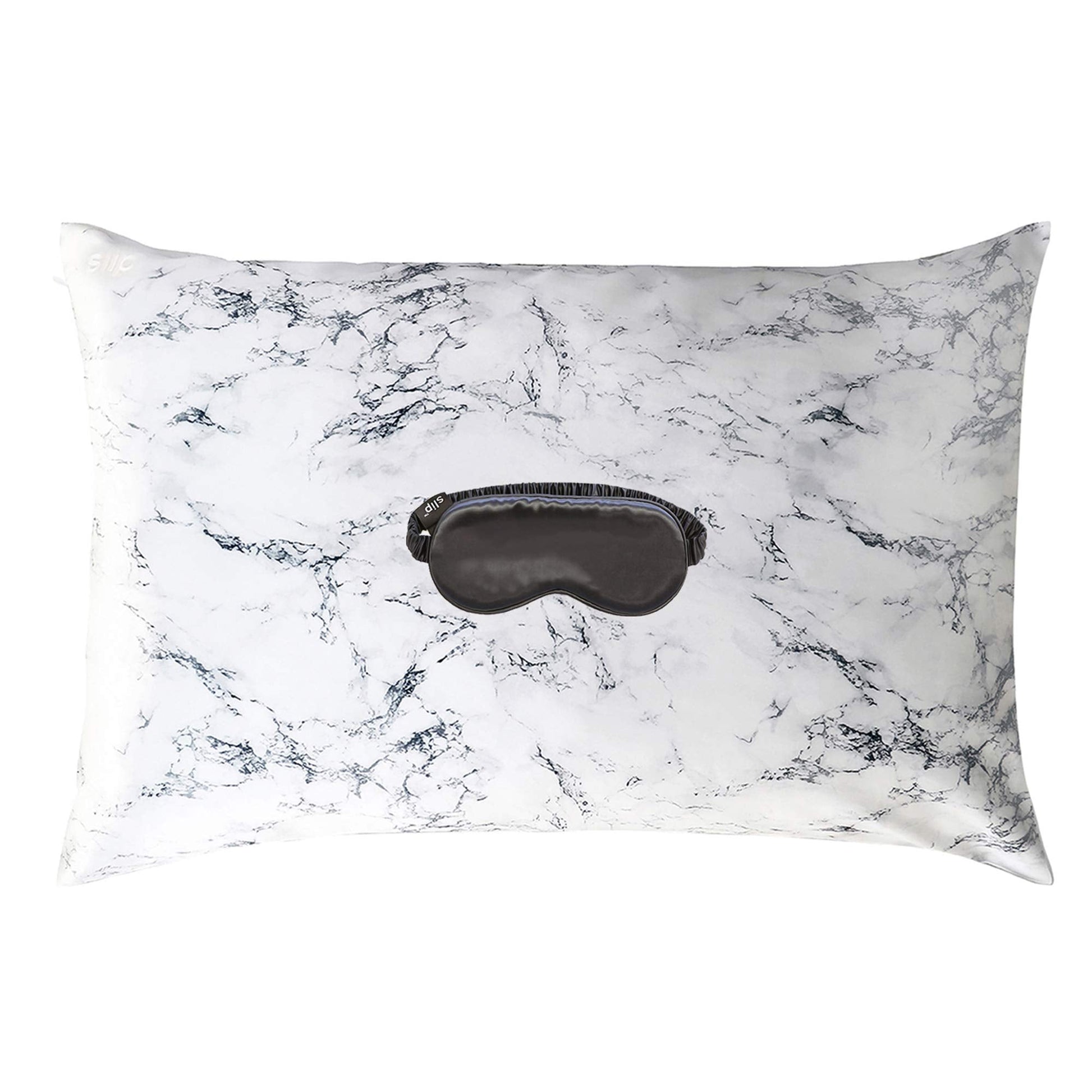 Silk Beauty Sleep Marble Charcoal Set Mu erry Silk 22 Momme Queen Size Silk Pillowcase 20" x 30") with Silk Soft, Comfortable Lightweight Silk Pillowcase