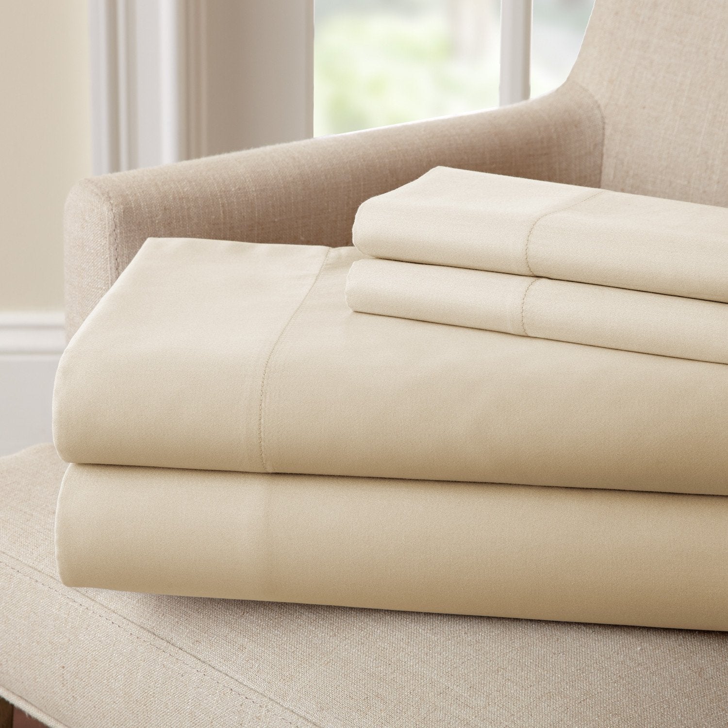 Solid Bamboo Rich Sheet Set 300 Thread Count Bamboo Rich Bed Sheet Set with Extra Deep Pocket Fitted Sheet, Flat Sheet and 2 Pillowcases, 4 Piece Set Queen, Oatmeal)