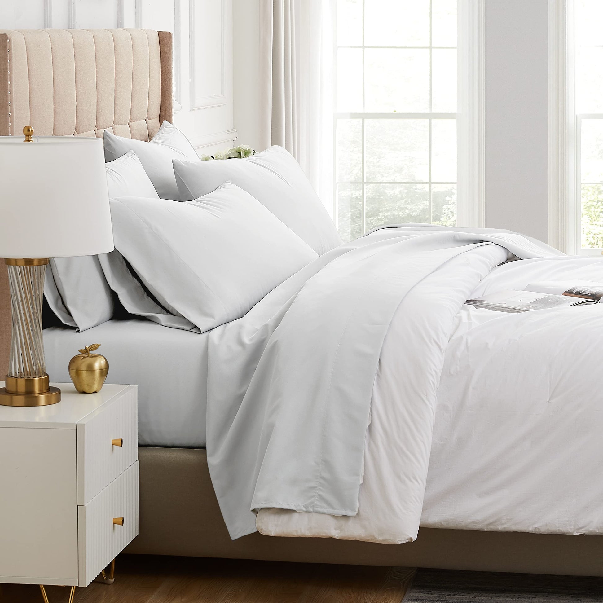 SouthShore Living Inc. 6-Piece, 21-Inch Extra Deep Pocket Sheet Set, Premium Quality, Easy Care, Shrinkage Free Sheet Set with 1 Flat Sheet, 1 Fitted Sheet, 4 Pillowcases, Bright White, Cal King