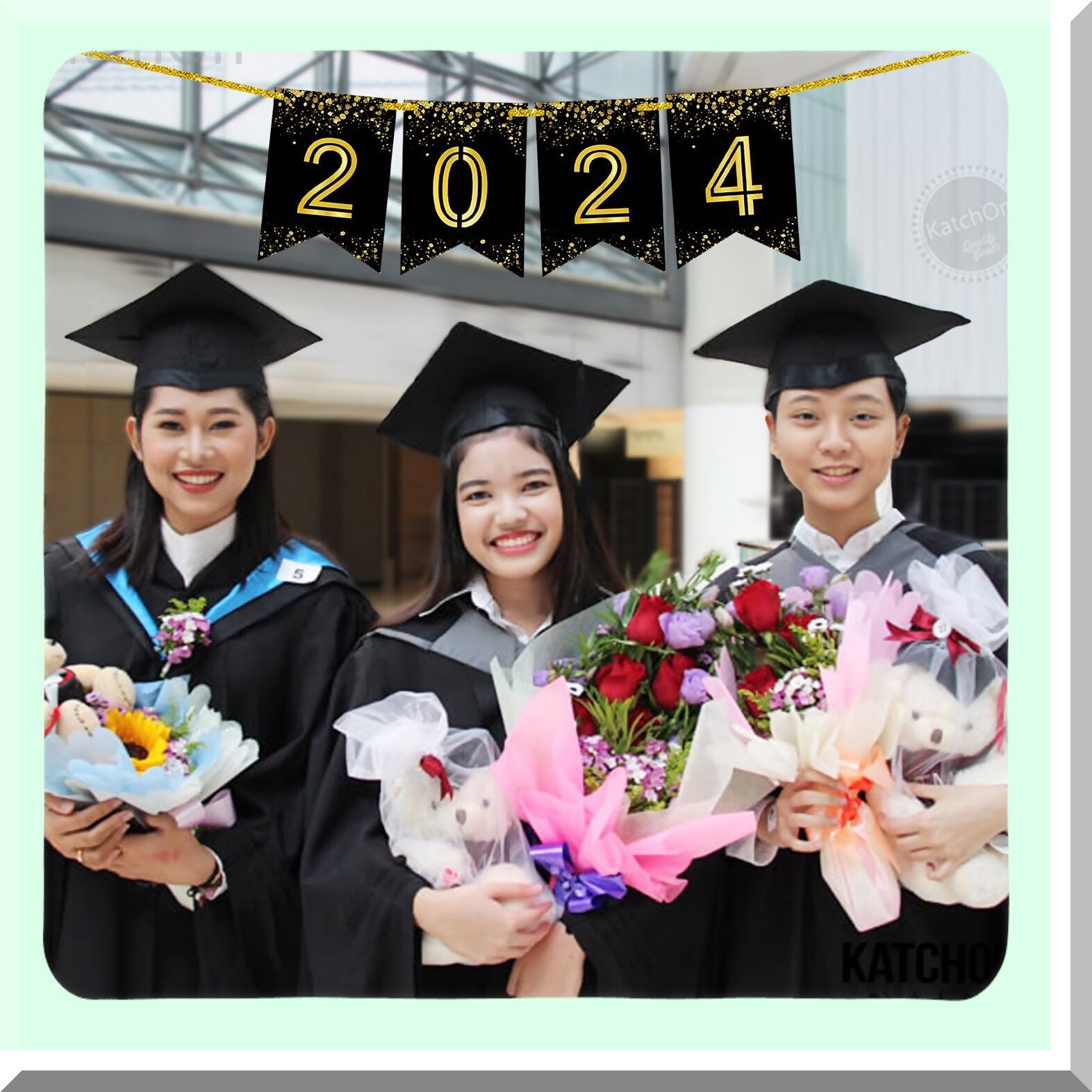 Celebrate graduation with a stunning 8-foot glittering banner featuring bold black and gold colors. This pre-assembled, no DIY sign is perfect for creating a memorable atmosphere at graduation parties, senior nights, or prom events. Made from sturdy cardstock with a shiny glitter finish, it offers a reusable design that can be hung easily to enhance your decor. The banner’s adjustable spacing allows for customized display, ensuring a perfect fit for your space. Its elegant appearance adds a touch of sophistication and sparkle, making it ideal for photo backdrops and celebratory settings. Whether used as a wall decoration or a focal point for your event, this large graduation banner creates a grand visual impact. Its high-quality materials and vibrant colors ensure it remains a beautiful keepsake for future celebrations. Elevate your graduation decor with this eye-catching, versatile banner that combines style and durability for a truly special occasion.