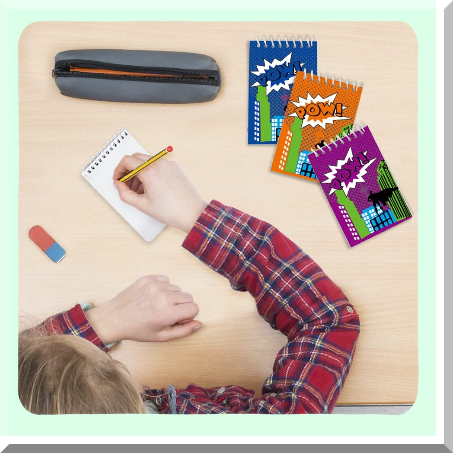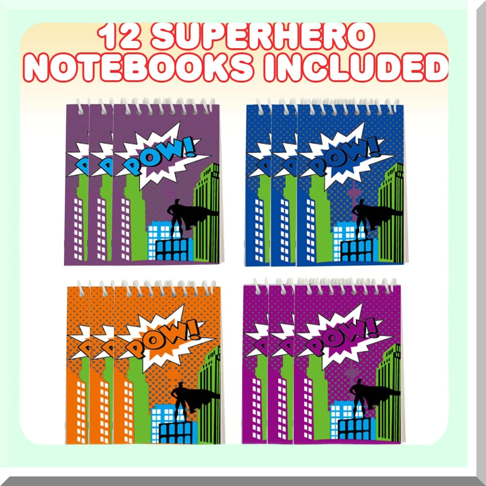 Mini superhero notebooks come in a pack of 12, featuring small comic-inspired spiral notepads perfect for school, office, or home use. Each colorful notepad measures 3.5 x 2.25 inches and contains 15 unlined pages, providing ample space for notes, sketches, or ideas. Designed with vibrant colors and engaging designs, these notebooks appeal to children and adults alike, making them ideal for birthday party favors, goodie bag fillers, or classroom rewards. Crafted with quality materials, the pages are resistant to ink bleed, and the notebooks are bound with durable cardboard covers secured by plastic springs for long-lasting use. Their compact size makes them easy to carry in bags, pockets, or wallets, ensuring you can jot down thoughts anytime. These versatile notebooks are suitable for various occasions and make thoughtful gifts for kids, students, or anyone who enjoys creative writing and doodling.
