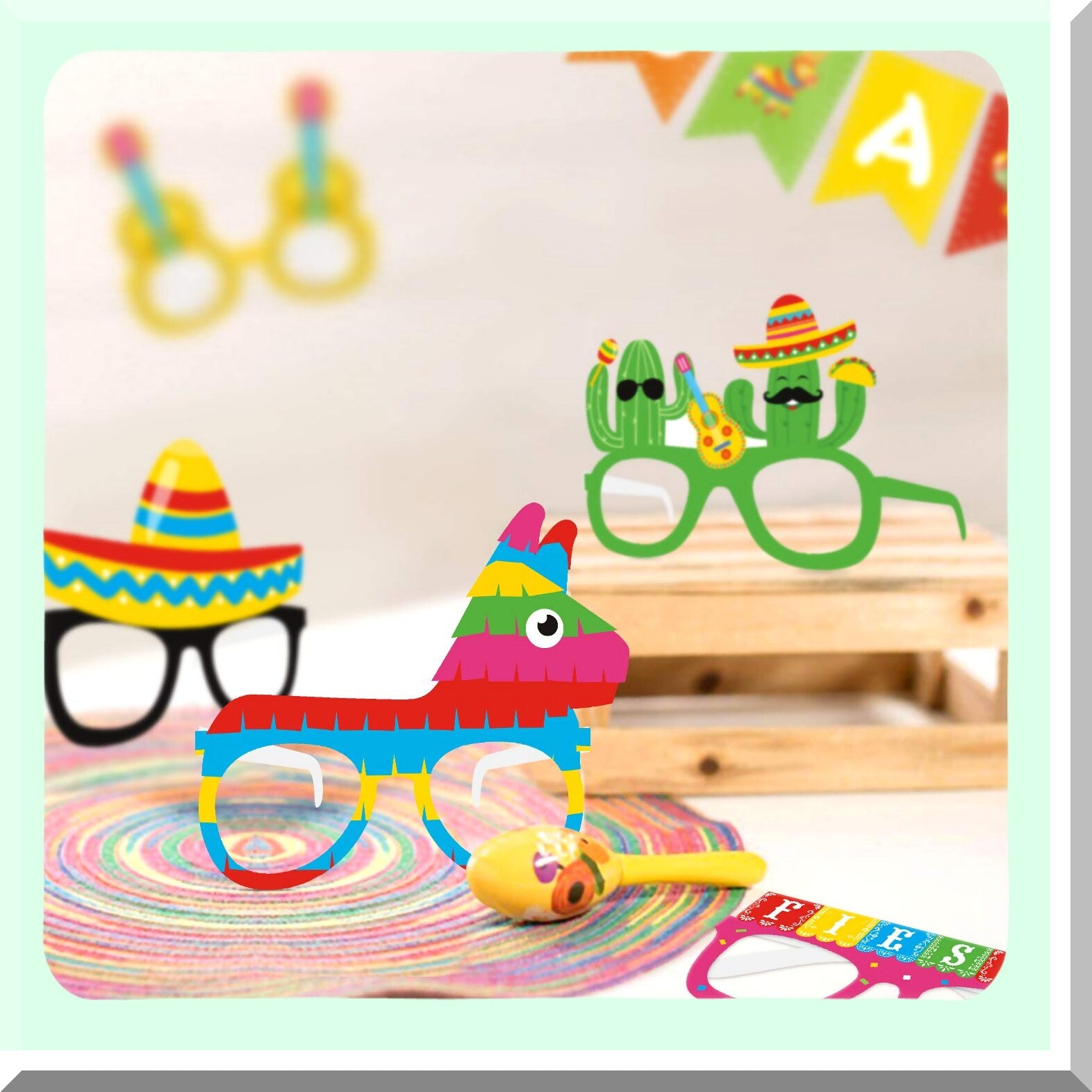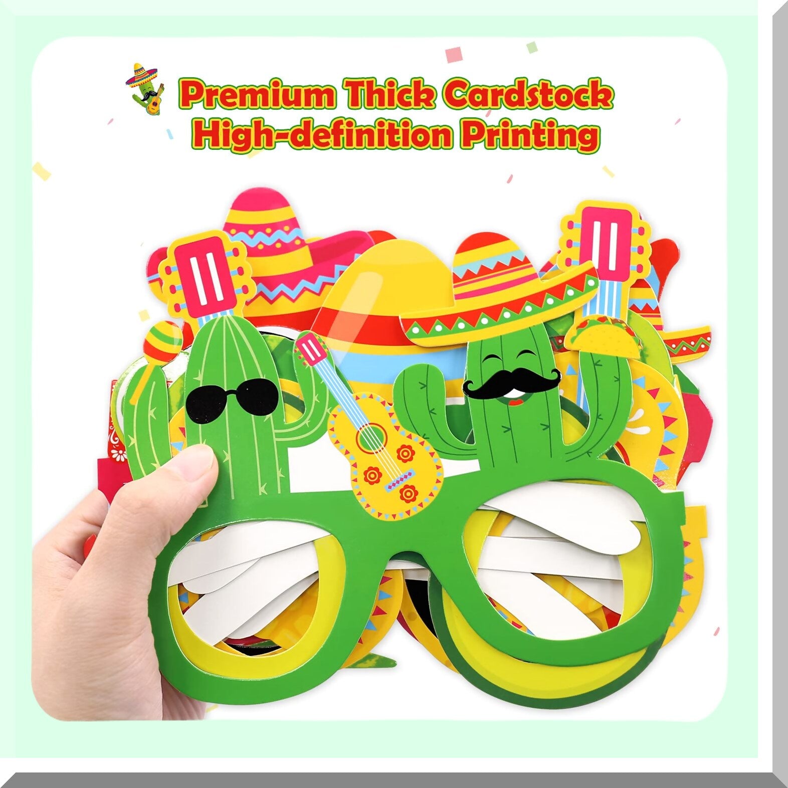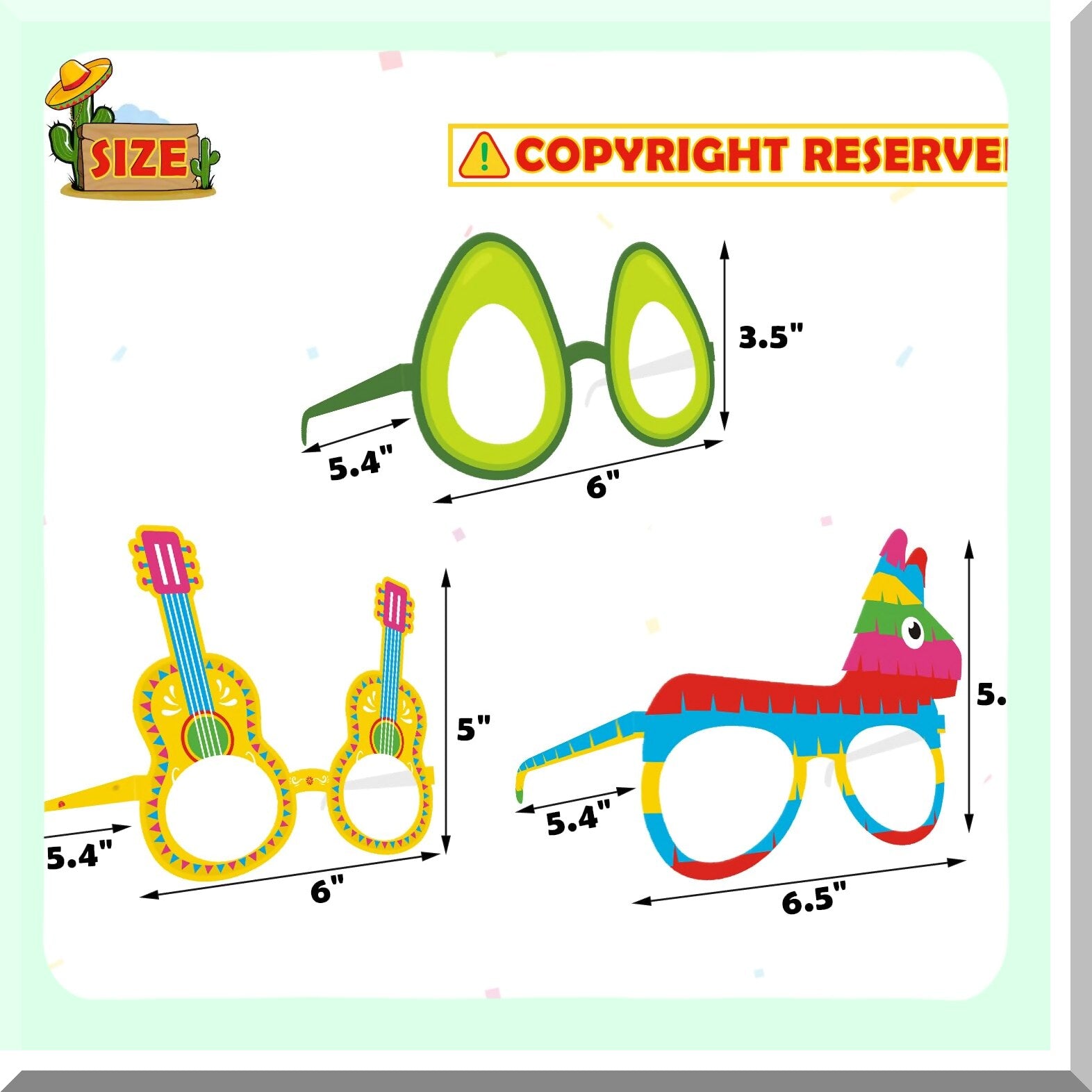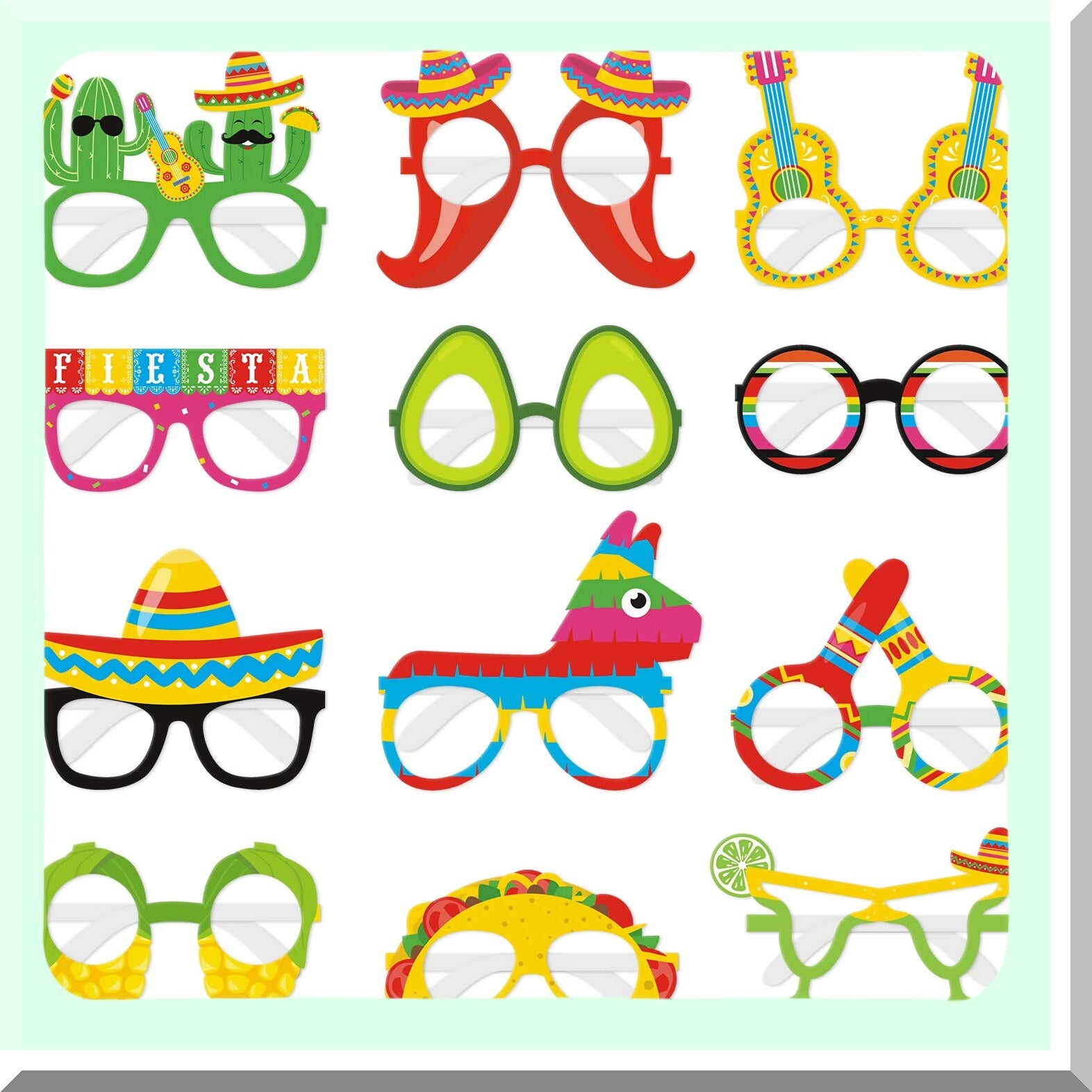 Celebrate your Mexican-themed events with these fun and colorful party glasses. Each set includes 12 pieces featuring various designs such as cactus, chili pepper, pinata, taco, avocado, corn, guitar, sombrero, maraca, and margarita. Made from durable, high-quality cardstock with vibrant printing, these glasses are comfortable to wear and suitable for all-day use. The frames measure approximately 6 inches, making them ideal for kids, teenagers, and adults. Perfect for birthdays, baby showers, weddings, engagement parties, family reunions, and other festive gatherings. Easy to put on and store, these glasses are great photo props to add a lively touch to your celebration. Enhance your party atmosphere with these reusable and eye-catching accessories that will entertain guests and create memorable moments. Satisfaction guaranteed; contact us if you have any concerns about your purchase.