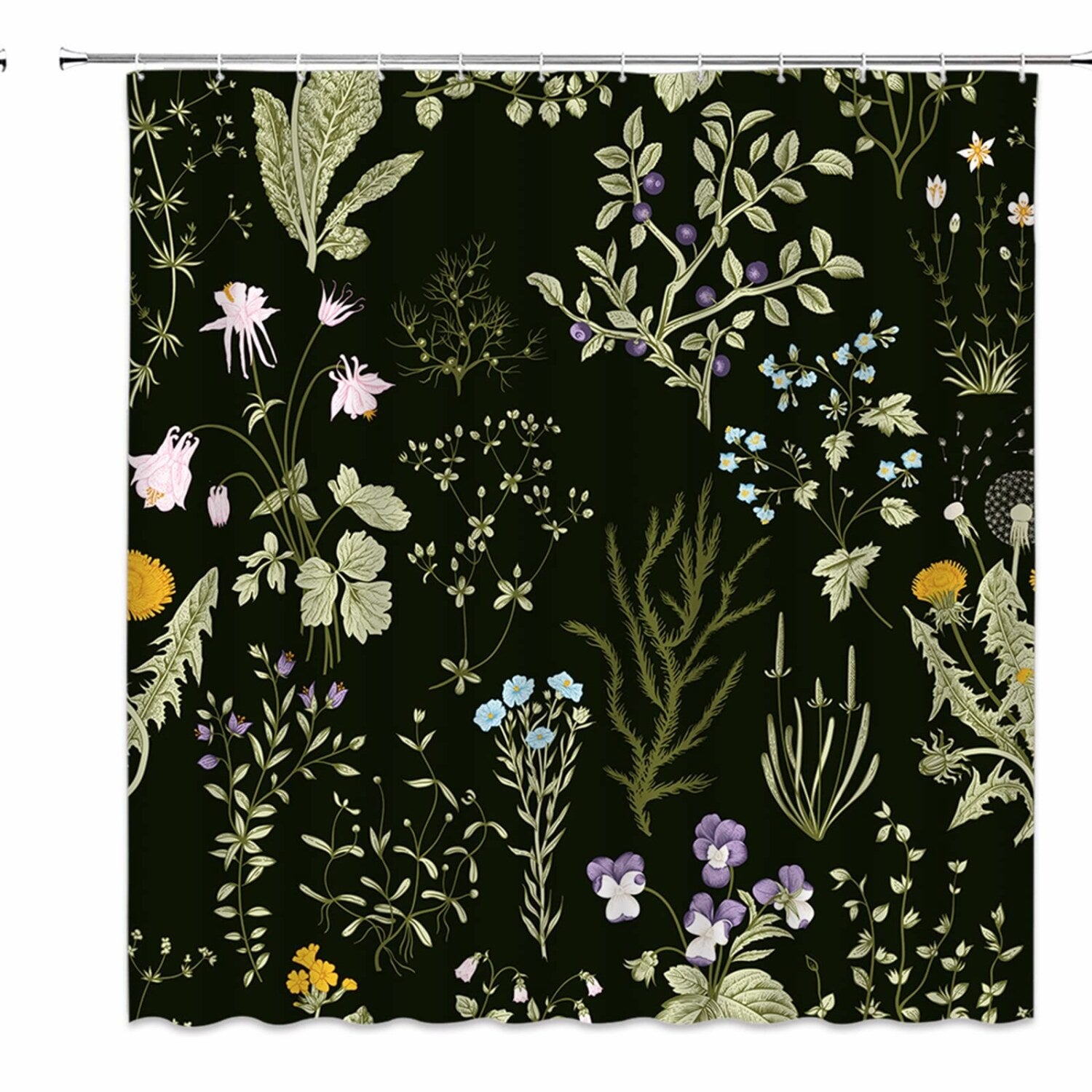 This beautiful shower curtain features a watercolor floral design with herbal plants, green leaves, and wildflowers, creating a vintage and natural aesthetic. Made from fabric, it adds a touch of elegance to your bathroom decor. The set includes hooks for easy installation. Its modern and creative style makes it suitable for various settings such as bathrooms, dormitories, hotels, or camping trips. The vibrant floral pattern can brighten up any space, making your environment more colorful and inviting. Please note that manual measurements may have a 1-2 cm error, and slight color differences may occur due to lighting and monitor settings. This versatile curtain also makes a thoughtful gift for friends and family. Enhance your living space with this charming floral shower curtain, combining functionality with artistic design to elevate your bathroom decor effortlessly.