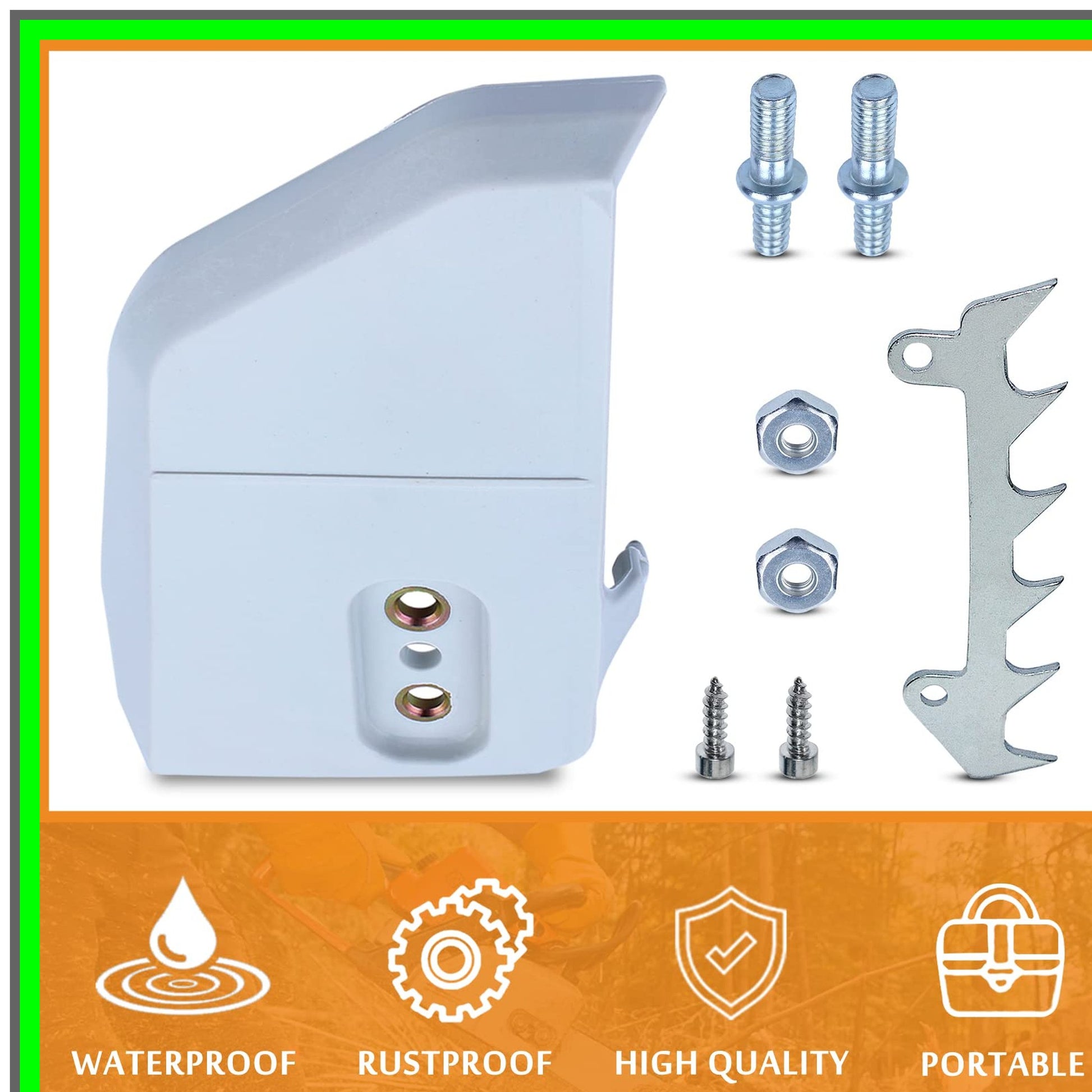 Revitalize your chainsaw with our premium replacement parts designed specifically for a range of models, including the 017, 018, 021, 023, 025, MS170, MS180, MS210, MS230, and MS250. This comprehensive kit includes a high-quality sprocket cover, a pair of durable bar studs, a pair of robust bar nuts, and a reliable bumper spike, ensuring your chainsaw operates at peak performance.Crafted to meet or exceed OEM specifications, our aftermarket components are the perfect solution for those seeking quality without the hefty price tag of genuine parts. Each piece is engineered for a precise fit, enhancing the longevity and efficiency of your chainsaw. Whether you're a professional or a DIY enthusiast, our replacement parts will help you tackle any cutting task with confidence.Say goodbye to the frustration of subpar performance and hello to a smoother, more efficient operation. Our commitment to quality means you can trust that these parts will stand the test of time, allowing you to focus on your work without interruptions. We prioritize your satisfaction and stand firmly behind our products. If you encounter any issues, our dedicated customer service team is here to assist you. Upgrade your chainsaw today with our reliable replacement parts and experience the difference in performance and durability. Don’t compromise on quality—choose our aftermarket solutions for a cost-effective way to keep your chainsaw running like new!