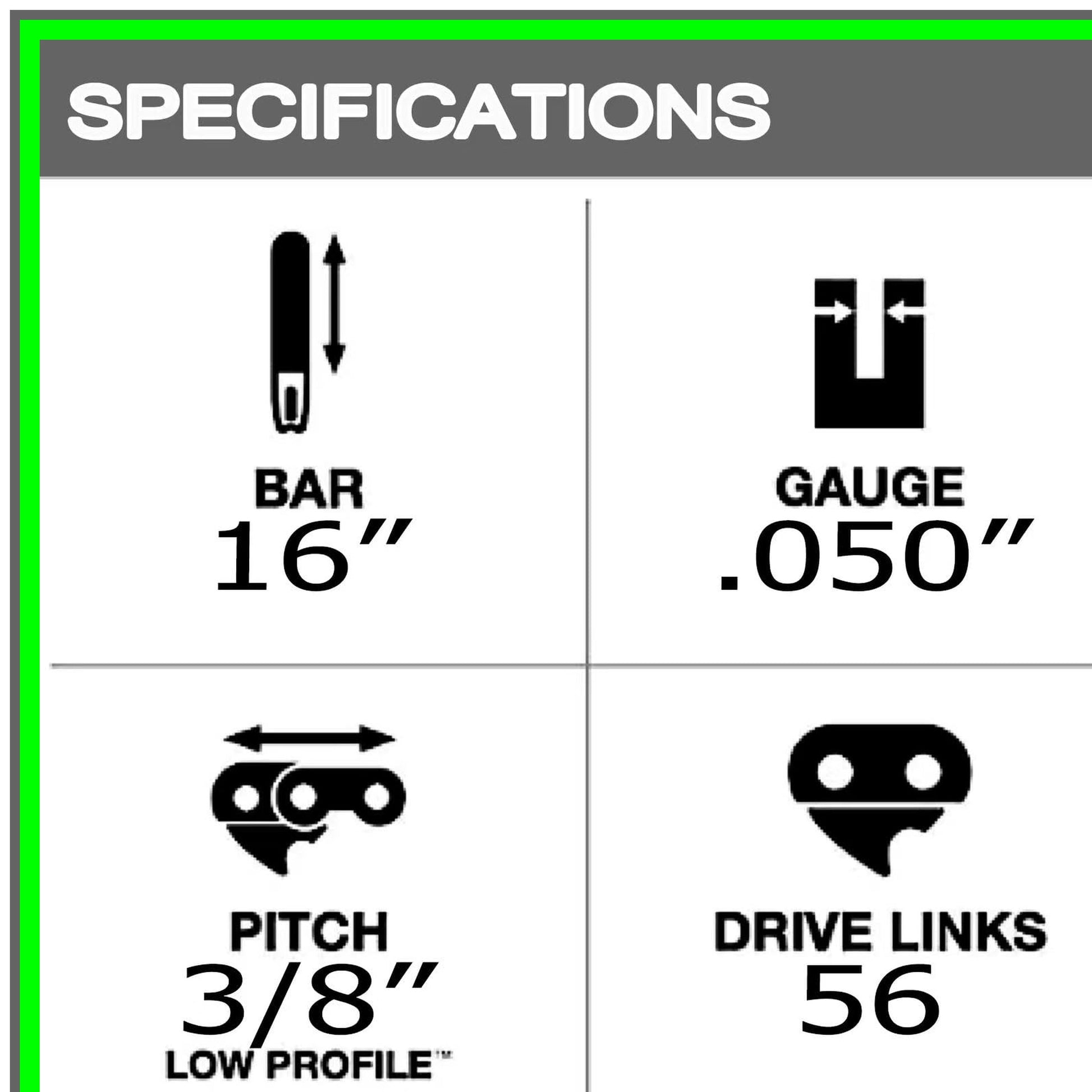 16 Inch Chainsaw Bar and Chain Set for ROIBY HUSQVARNA Homelite Earthwise