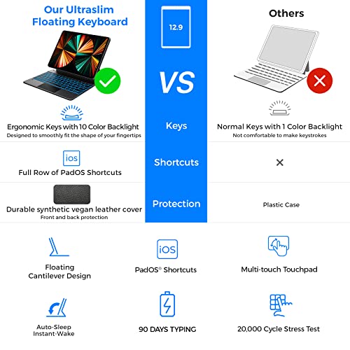 '-Style Keyboard Case for iPad Pro 12.9 2021 - Thin, Backlit, Wireless Keyboard with Trackpad for iPad Pro 12.9 inch 2021 5th & 4th & 3rd Gen, Slim Rugged Folio (Black)