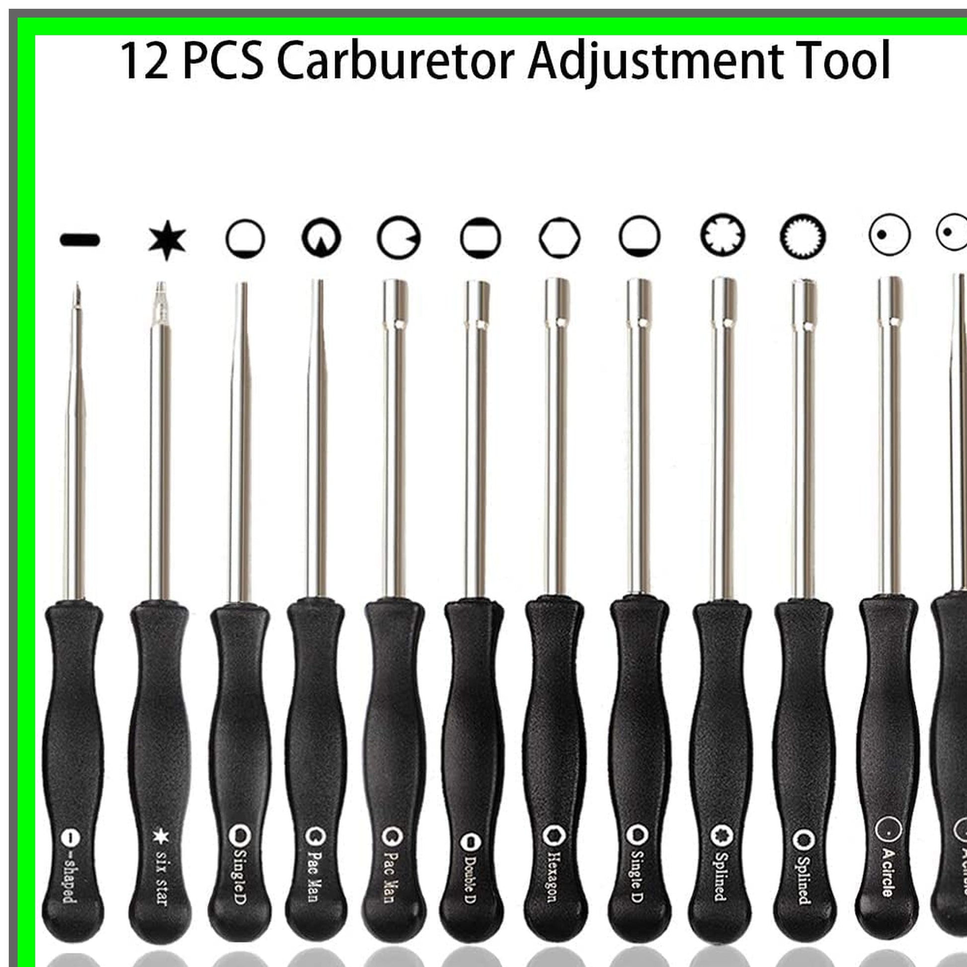 Revitalize your small engine performance with our comprehensive 12-piece Carburetor Adjustment Tool Kit, designed specifically for 2-cycle engines. This essential toolkit is a must-have for anyone looking to maintain and optimize the efficiency of their equipment, including string trimmers, chainsaws, leaf blowers, hedge trimmers, edgers, and more. Each kit includes a variety of specialized tools compatible with leading brands such as ZAMA, Walbro, STIHL, Husqvarna, Poulan, and Ryobi, ensuring you have the right tool for every job. The ergonomic design of the handles provides a comfortable grip, allowing for precise adjustments without straining your hands. The squared handles are marked for easy identification of 1/4 turn increments, making carburetor tuning straightforward and efficient.Crafted from high-quality stainless steel, these tools are built to withstand the rigors of regular use. The heavy-duty adjustable heads ensure stability and precision during adjustments, while the advanced heat treatment process and corrosion-resistant finish guarantee long-lasting durability. Included in the kit are carburetor cleaning needles and brushes, perfect for maintaining clean fuel lines and optimal engine performance. A hex wrench is also provided for easy disassembly of your machinery, making this kit a complete solution for all your carburetor needs.With clearly marked tool types on the handles, you can quickly grab the right tool for the task at hand. Keep your engines running smoothly and efficiently with this indispensable Carburetor Adjustment Tool Kit, designed for both professionals and DIY enthusiasts alike. Don’t let a poorly adjusted carburetor hold you back—invest in your equipment’s longevity today!