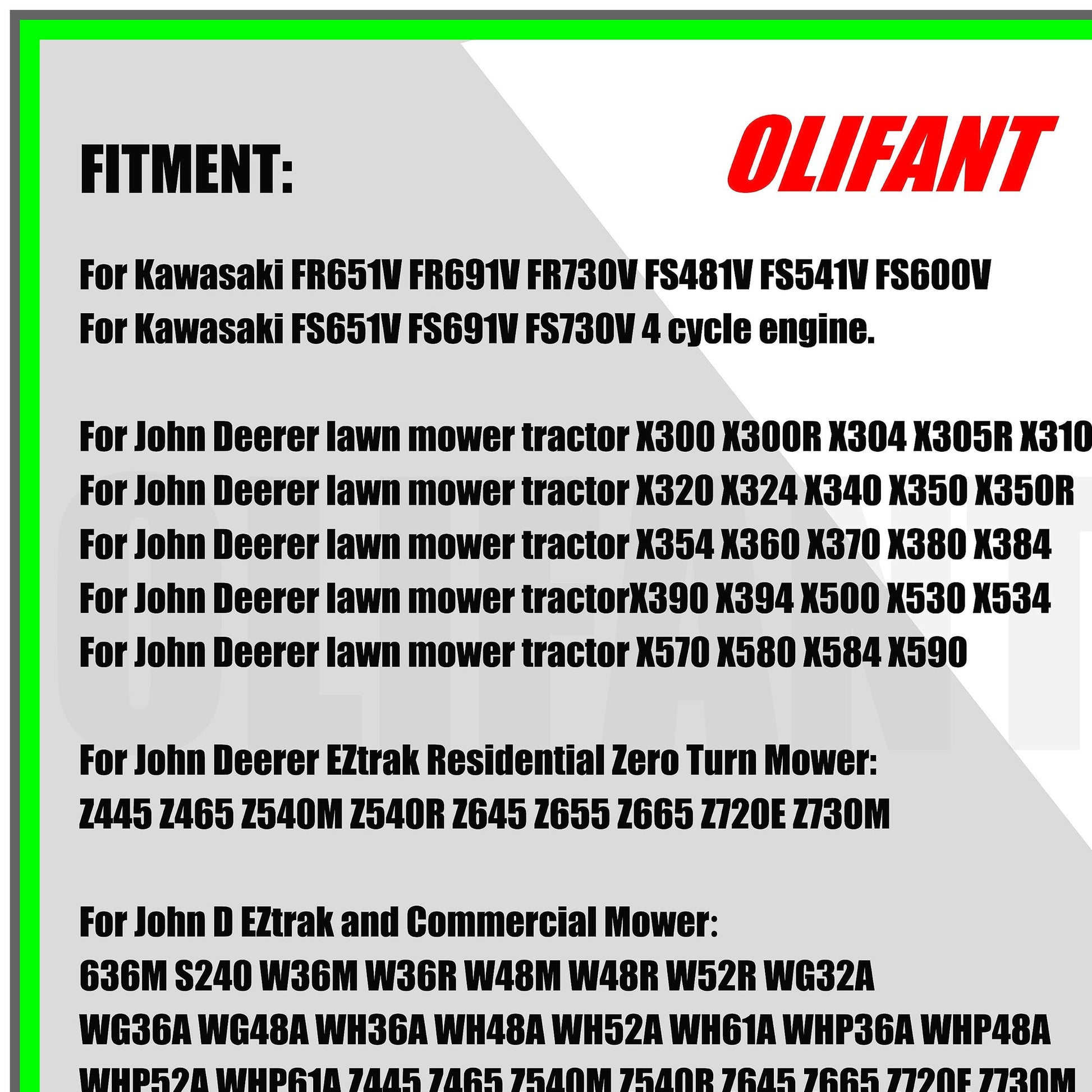 Revitalize your lawn care routine with our premium 5-piece air filter set, expertly designed for a range of Kawasaki 4-stroke engines, including models FR651V, FR691V, FR730V, FS481V, FS541V, FS600V, FS651V, FS691V, and FS730V. This comprehensive kit includes the essential 11013-0752 and 11013-0726 air filters, along with the 11013-7046 pre-filter, ensuring your engine operates at peak performance.Crafted with high-quality materials, these air filters provide superior filtration, effectively trapping dust, debris, and contaminants that can hinder engine efficiency. By maintaining optimal airflow, they help enhance fuel efficiency and prolong the life of your engine, making them a must-have for any lawn care enthusiast or professional landscaper.Installation is a breeze, allowing you to quickly replace your old filters and get back to mowing with confidence. Whether you're tackling a small residential lawn or a larger commercial property, our air filters are engineered to deliver reliable performance, ensuring your Kawasaki engine runs smoothly and efficiently.Don't compromise on quality when it comes to your lawn mower's maintenance. Invest in this essential air filter set to keep your equipment in top shape, reduce wear and tear, and achieve a beautifully manicured lawn. Elevate your lawn care experience with our trusted air filter solution, designed specifically for Kawasaki engines. Order your 5-piece air filter set today and enjoy the benefits of a cleaner, more efficient engine!