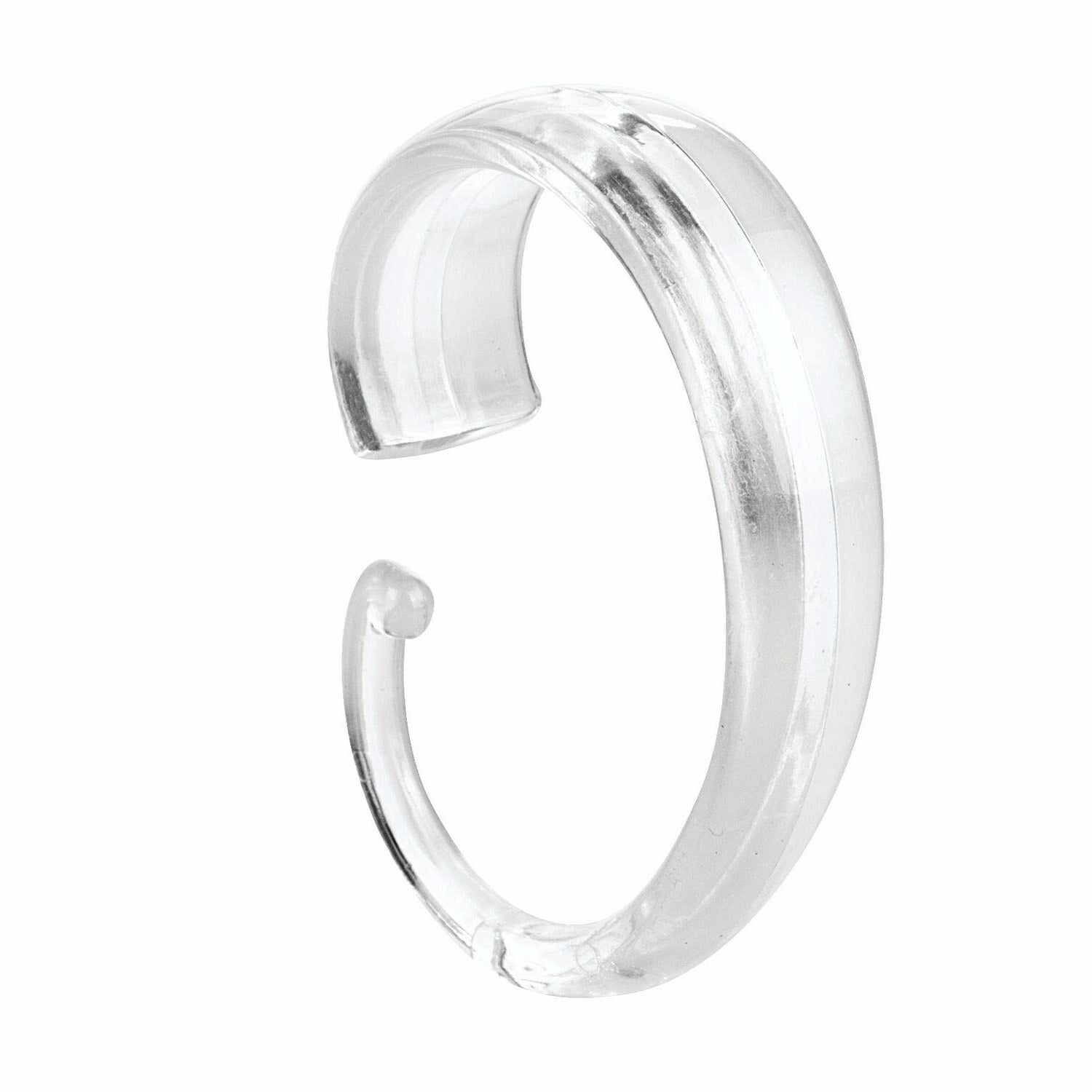 This set of twelve plastic shower curtain C-hooks measures 2.38" x 1.75" x 0.5" and features a clear, modern design. Crafted from durable BPA-free plastic, these hooks are built to withstand daily use. The open C-shape allows for easy hanging over most standard-sized shower curtain rods, securely holding both shower curtains and liners in place. The smooth surface of each hook glides effortlessly over the rod, making it simple to get in and out of the shower. Installation is quick and straightforward—just attach the hooks to your shower curtain and liner, then hang over the rod. These versatile hooks are suitable for various shower curtain, liner, and rod sizes, providing a functional and stylish upgrade to any bathroom. Their durable construction ensures long-lasting performance, while the transparent design adds a sleek touch to your shower space.