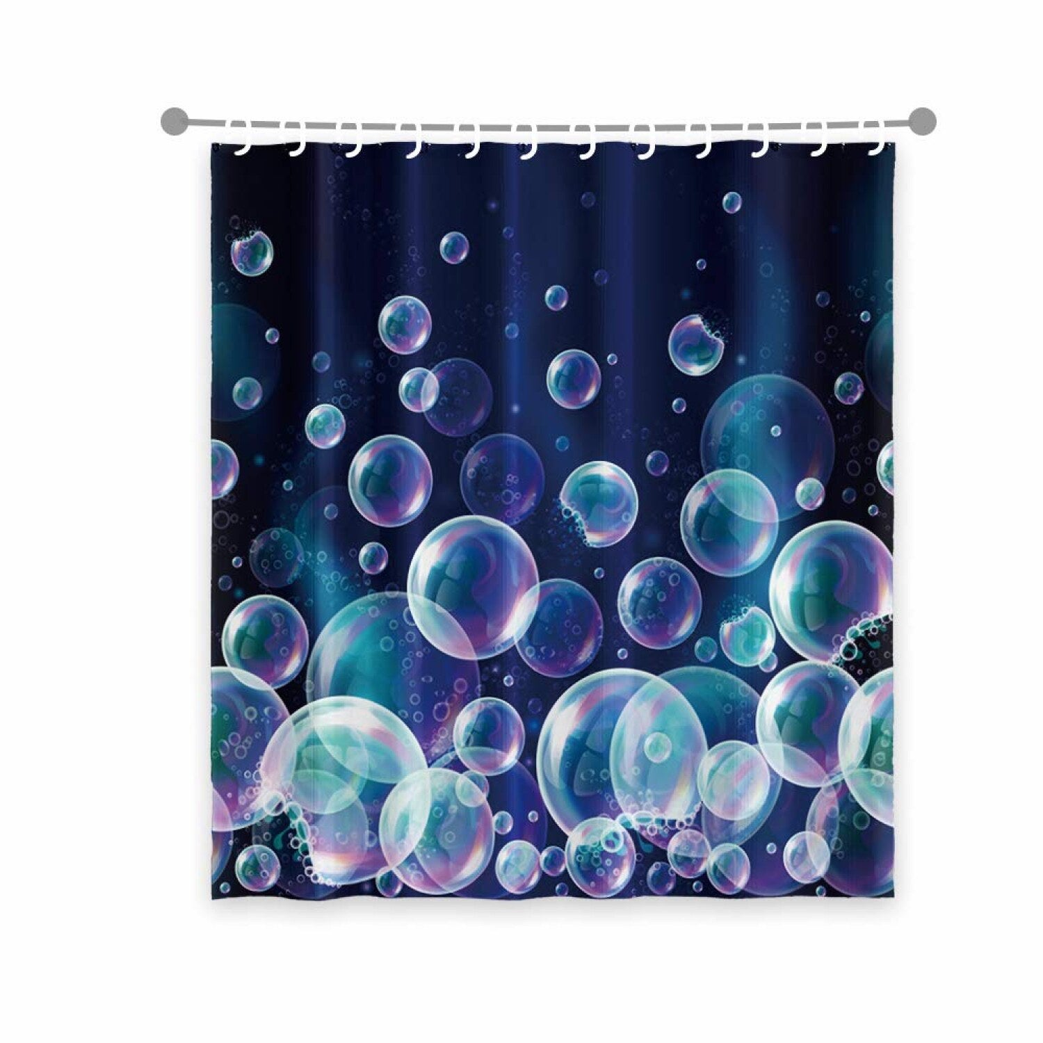 This 72x96 inch colorful bubbles shower curtain features a modern geometric circle design in dark purple, adding a dreamy, beautiful touch to your bathroom decor. Crafted from soft, lightweight polyester fabric, it offers a waterproof and quick-drying experience. The high-definition 3D printing technology ensures bright colors and vivid patterns that bring vitality to your space. Designed to fit most standard bathtubs and small shower stalls, it is easy to install by simply hooking onto the shower rod. The curtain is machine washable on a gentle cycle and tumble dry low, making maintenance effortless. Its stylish design complements any bathroom accessories, from towels to mats, transforming your bathroom from dull to fabulous. Please note slight size variations may occur due to manual measurement, and color differences might exist across screens. Enhance your bathroom ambiance with this modern, artistic shower curtain.