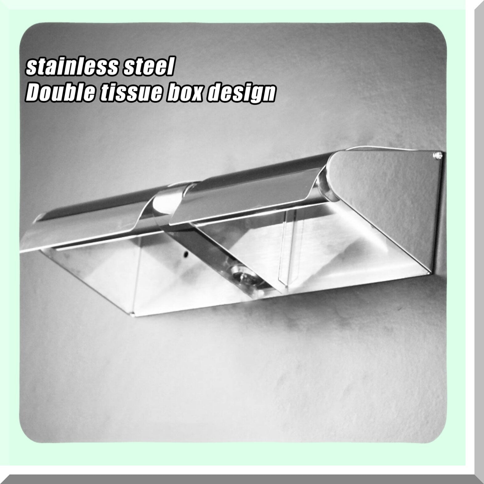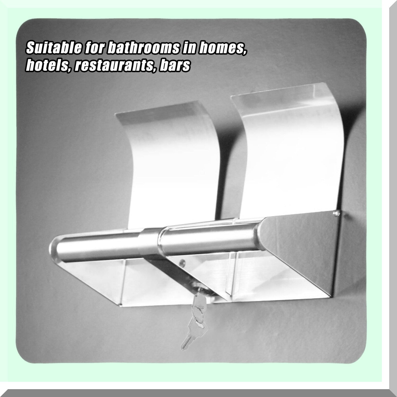 This double tet paper holder is crafted from durable 304 stainless steel, ensuring long-lasting use. It features a wall-mounted design with a lock for secure storage of two rolls of tissue. The sleek, modern appearance adds a touch of elegance to any space, whether in the bathroom, kitchen, bedroom, living room, or hotel. Weighing approximately 1000g, it includes two keys, two expansion tubes, and screws for easy installation. Its sturdy construction and stylish design make it a practical and attractive addition to your home or commercial space.