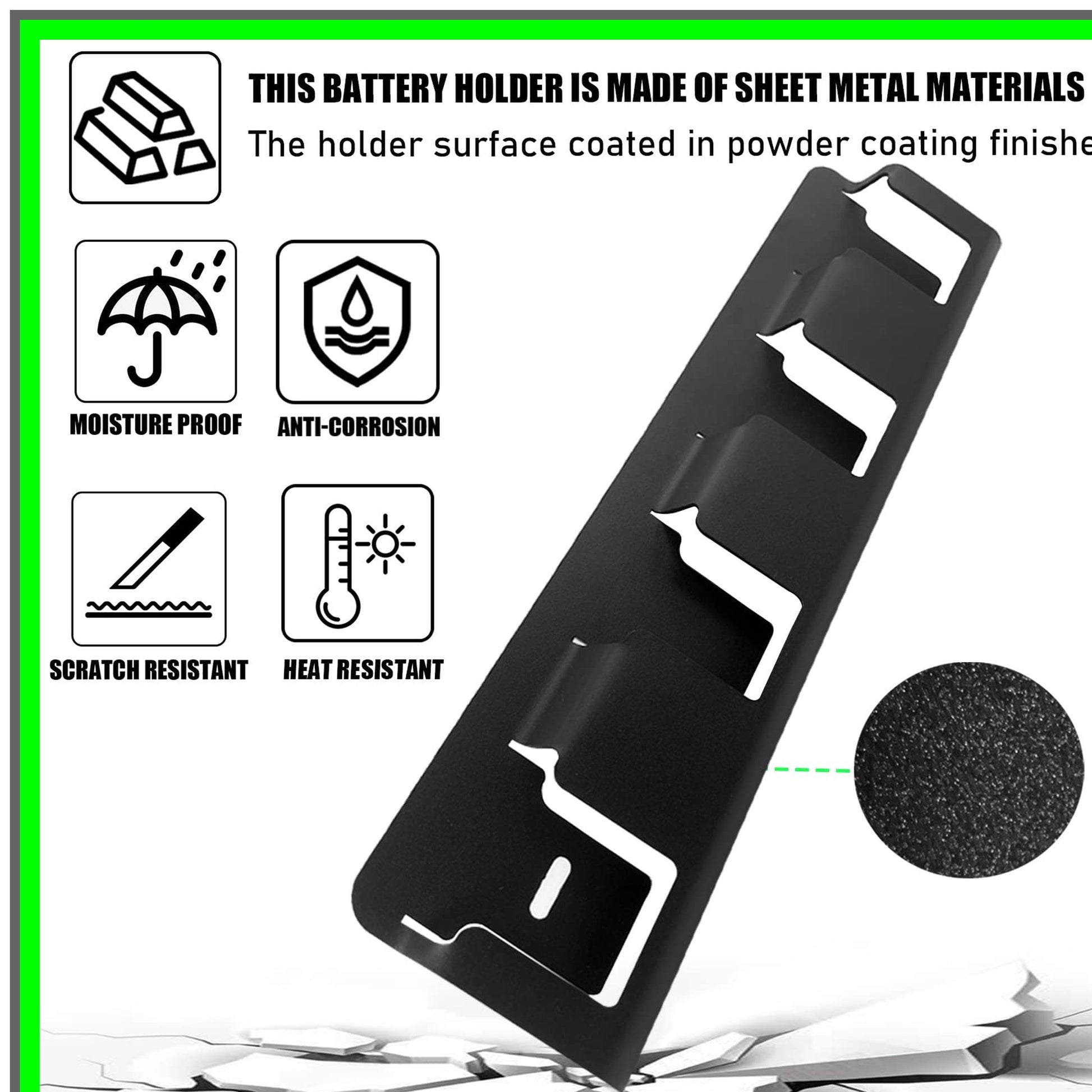 Transform your cluttered workspace into a model of efficiency with our innovative wall-mounted battery organizer. Say goodbye to the chaos of tangled wires and scattered batteries, and welcome a streamlined solution that keeps your essential power sources neatly arranged and easily accessible. This battery holder is designed specifically for 18V and 20V batteries, accommodating popular models like DCB200, DCB201, DCB202, and Milwaukee M18 series batteries ranging from 1.5Ah to 6.0Ah.Crafted from robust, high-quality metal, this organizer is built to withstand the rigors of any environment—be it a workshop, garage, or job site. Its durable construction ensures resistance to rust, scratches, and high temperatures, safeguarding your batteries from wear and tear while maintaining optimal performance. The sleek design not only saves valuable bench space but also enhances the aesthetic of your workspace, making it a perfect addition for both professionals and DIY enthusiasts alike.Installation is a breeze, allowing you to mount it wherever you need it most—whether in a truck, trailer, basement, or workshop. No more rummaging through drawers or cabinets; with this battery holder, your batteries are always on display and within reach. Looking for the perfect gift for the handyman or DIY lover in your life? This battery organizer is a thoughtful and practical choice that will be appreciated for years to come. Elevate your organization game and keep your batteries in prime condition with this essential tool storage solution!