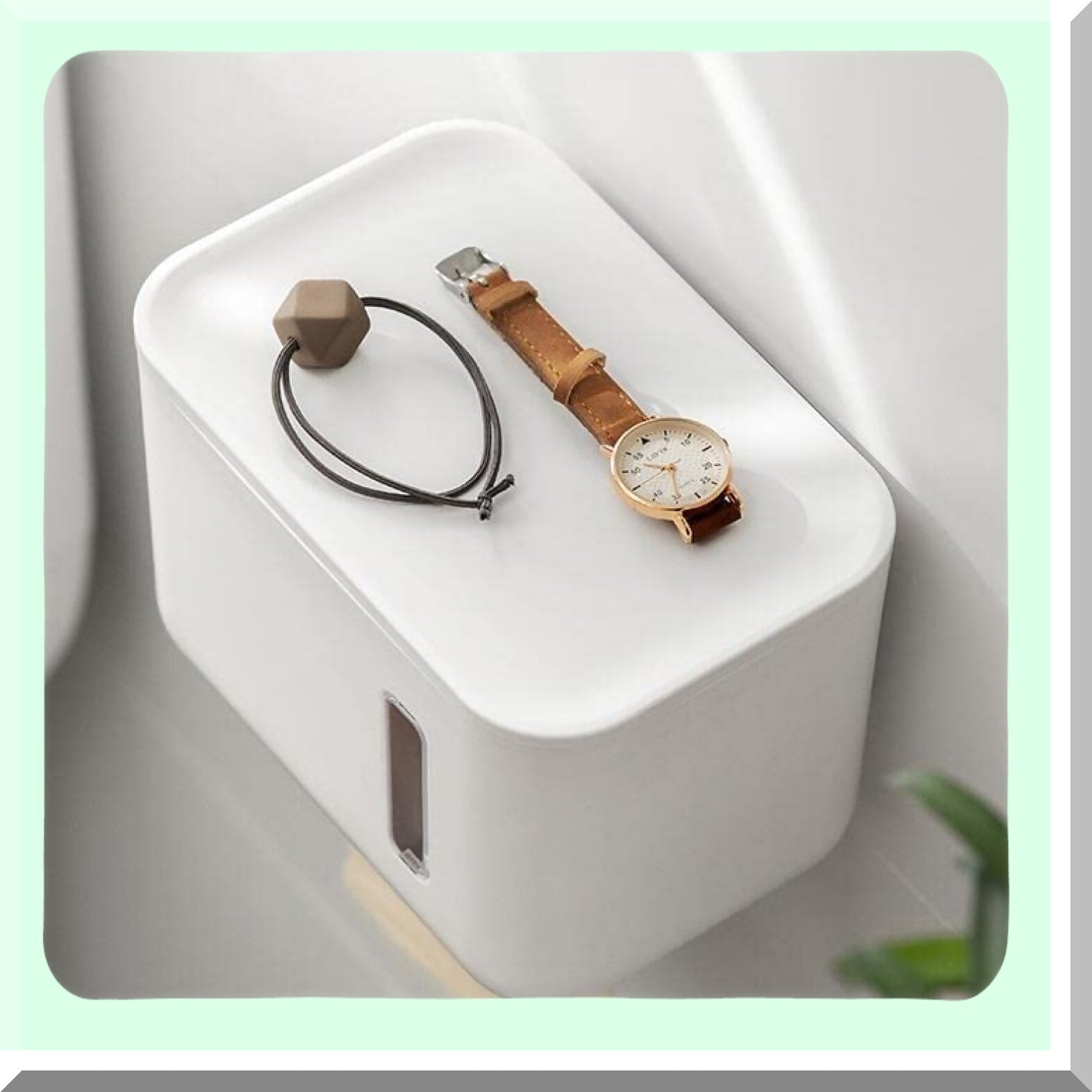This wall-mounted tissue paper holder features a simple and elegant design with a large capacity for storing toilet paper rolls. Made from durable ABS material and finished in white, it measures 18.7cm in length, 12cm in width, and 13cm in height, weighing 250g. The dispenser is waterproof and dustproof, effectively preventing tissue from getting wet or dirty. A visible window allows for easy monitoring of remaining paper, enabling quick replacement when needed. The top surface provides space for storing a smartphone or glasses, adding convenience. Installation is straightforward with a self-adhesive backing, requiring no drilling—simply clean and dry a smooth surface, remove the protective layer, and press firmly. For optimal adhesion, let it stand for 24 hours before use. Suitable for tiles, metal, or glass surfaces, it is not recommended for limestone, wallpaper, or painted walls. The package includes one tissue box and two adhesive hooks.