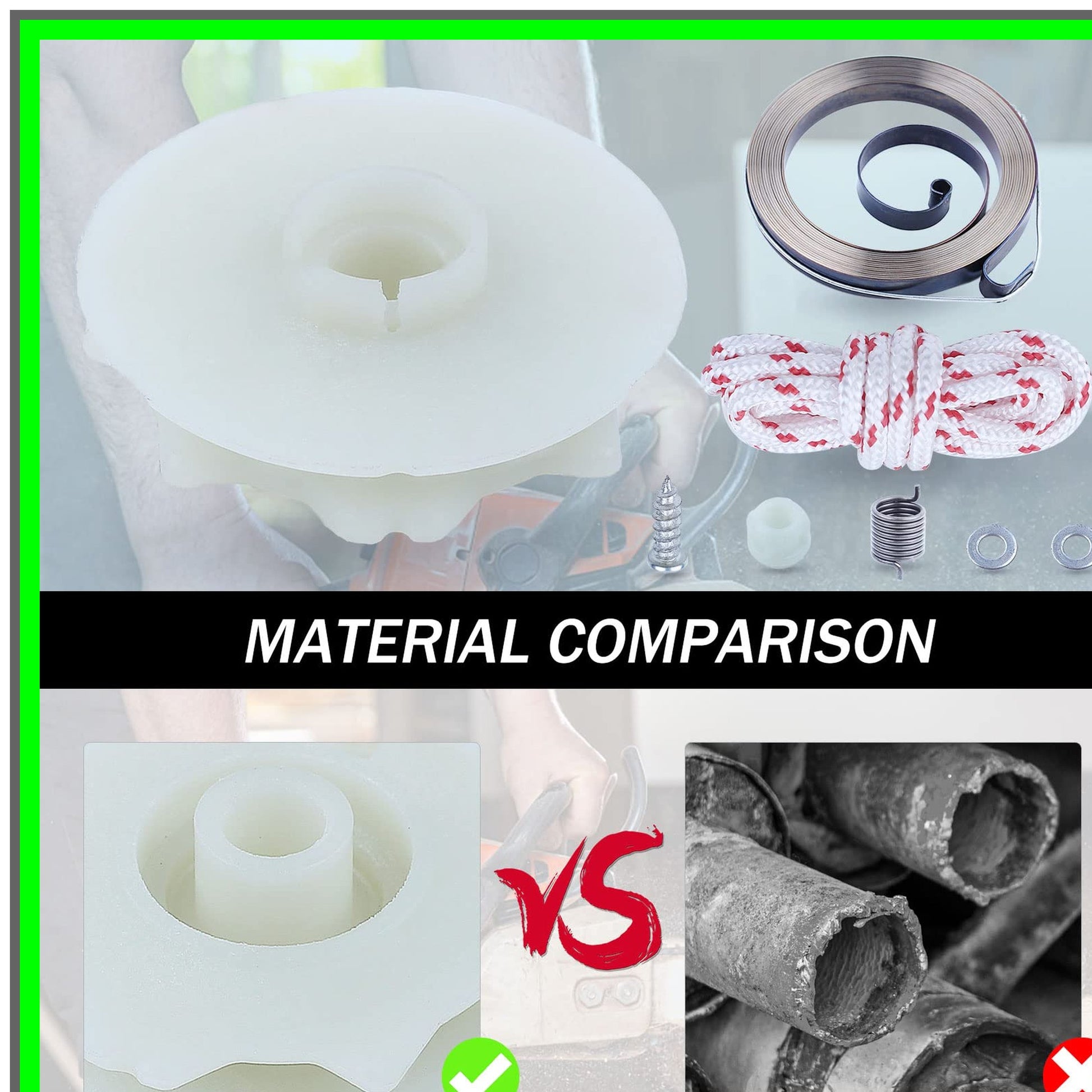 Revitalize your gas chain saw with our premium replacement starter assembly, designed for seamless compatibility with a range of Poulan Pro models, including the P4018AV, PP4218AV, and PP4620AV series. This comprehensive kit ensures that your equipment runs smoothly and efficiently, allowing you to tackle any cutting task with confidence.Crafted with precision, this starter assembly includes everything you need for a hassle-free installation: a durable starter pulley, a robust starter spring, a recoil spring with hub, a high-quality starter rope, and a secure bolt with washer. Each component is engineered to meet or exceed OEM specifications, guaranteeing optimal performance and longevity.Before purchasing, we recommend comparing your original parts with our detailed images to ensure a perfect fit. Our commitment to quality means you can trust that this replacement assembly will restore your chain saw to its full potential, enhancing your outdoor experience.Whether you're a professional landscaper or a weekend warrior, having reliable equipment is essential. This starter assembly not only improves the functionality of your chain saw but also contributes to safer operation, reducing the risk of unexpected failures during use.Upgrade your Poulan Pro chain saw today and enjoy the peace of mind that comes with knowing you have a dependable starter assembly at your fingertips. With our friendly customer service ready to assist you, your satisfaction is our top priority. Don’t let a faulty starter hold you back—get back to cutting with ease and efficiency!