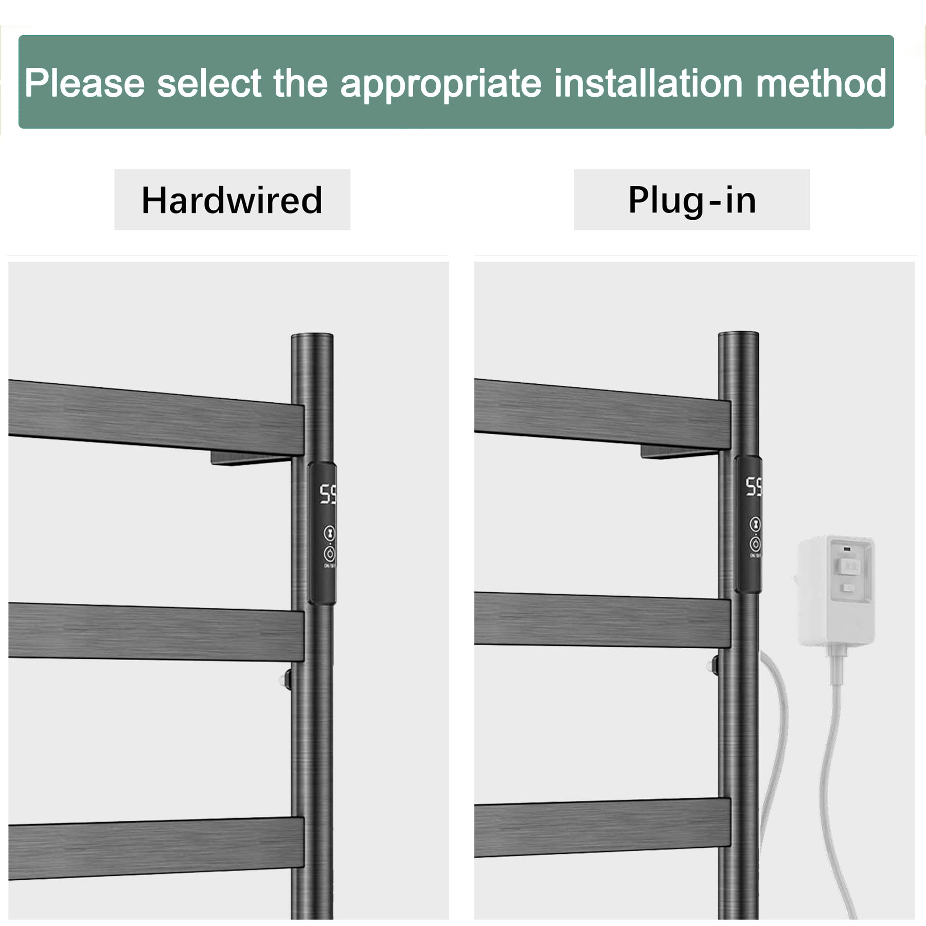 Towel Warmer 4 Bars Electric Heated Towel Rack Wall Mount Hardwired with Timer/Temperature Control/Built-in Carbon Fibre Heating Wires