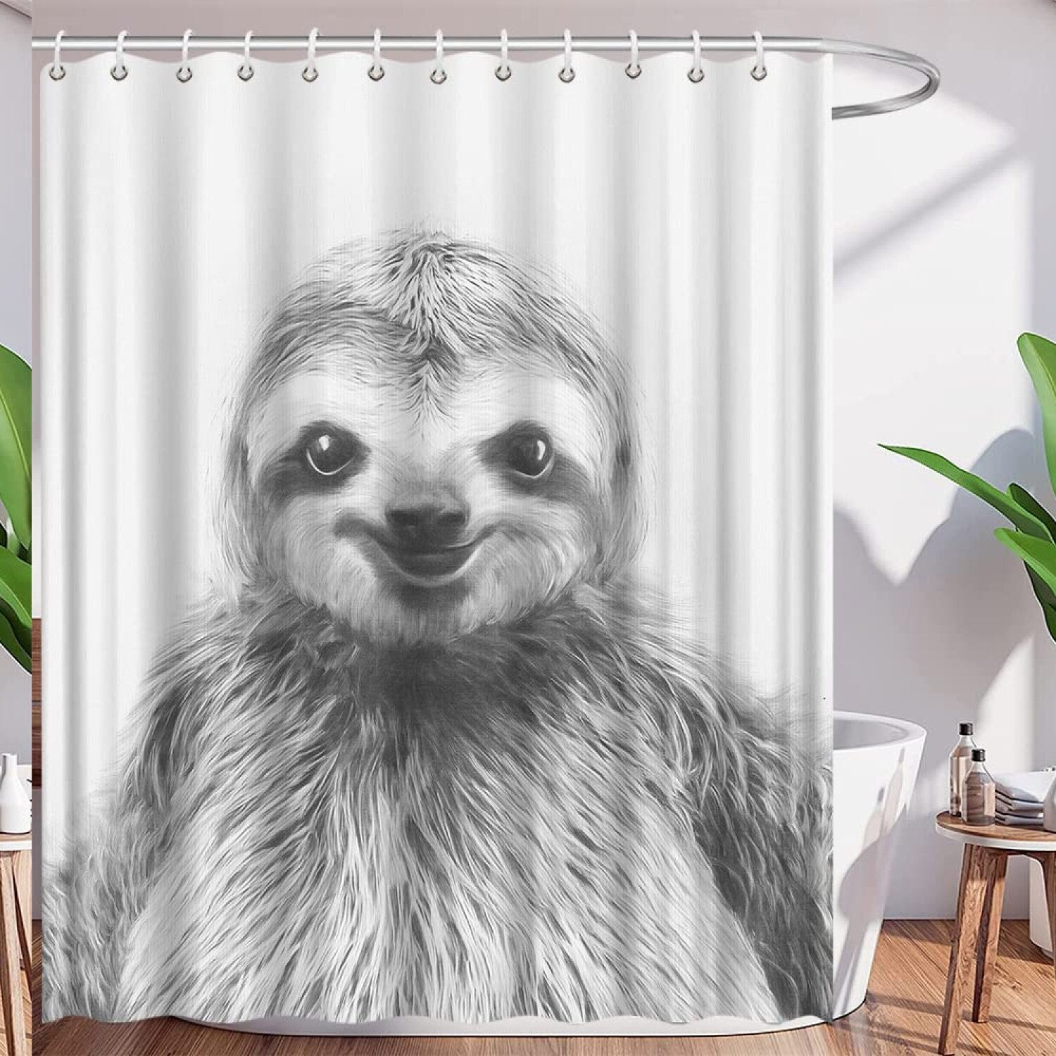 Sloth Shower Curtain 70x70 Inch White Gray