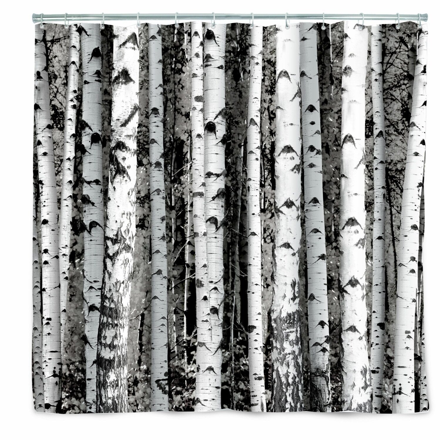 This shower curtain is made from 100% polyester and measures 72 inches by 72 inches. It features a fun birch wood design that brings a touch of the outdoors into your bathroom. The curtain is packaged in a PVC bag for easy storage and transport. Its durable polyester material ensures long-lasting use, while the unique birch pattern adds visual interest to your space. Perfect for creating a natural, inviting atmosphere in your bathroom, this curtain combines functionality with a distinctive design.