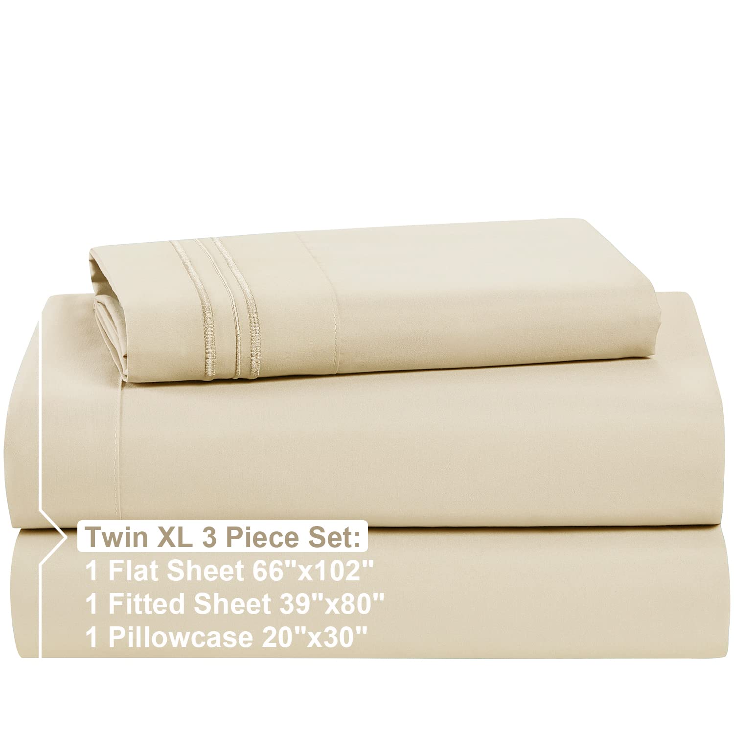 Wake Up to a Brighter TomorrowThe search is over! Say goodbye to restless, sweaty nights and usher in a new era of peaceful sleep.Our luxurious sheets are tightly woven and double brushed on both sides, contributing to a silky soft feel and ensuring that oursheets are softer and more durable than sheets, cotton sheets or 1800 thread count sheets!Easy Use and CareUnlike fitted sheets, our sheets have elastic all around the entire sheet for a secure fit that wont shift around while you sleep!No need for sheet grippers or additional corner straps because our sheets will stay secure throughout the night, letting you sleep more peacefully.Machine wash in cold water. Tumble dry on low and remove promptly. Into HappinessWe created to bring you soft, beautiful bedding at fair prices.As pioneers at the forefront of the bedding market, we are proud to present you with affordable, high-quality bedding, crafted from premium and made to last. e between our silky soft bedding for a sleep so sublime, youll wonder if youre dreaming!