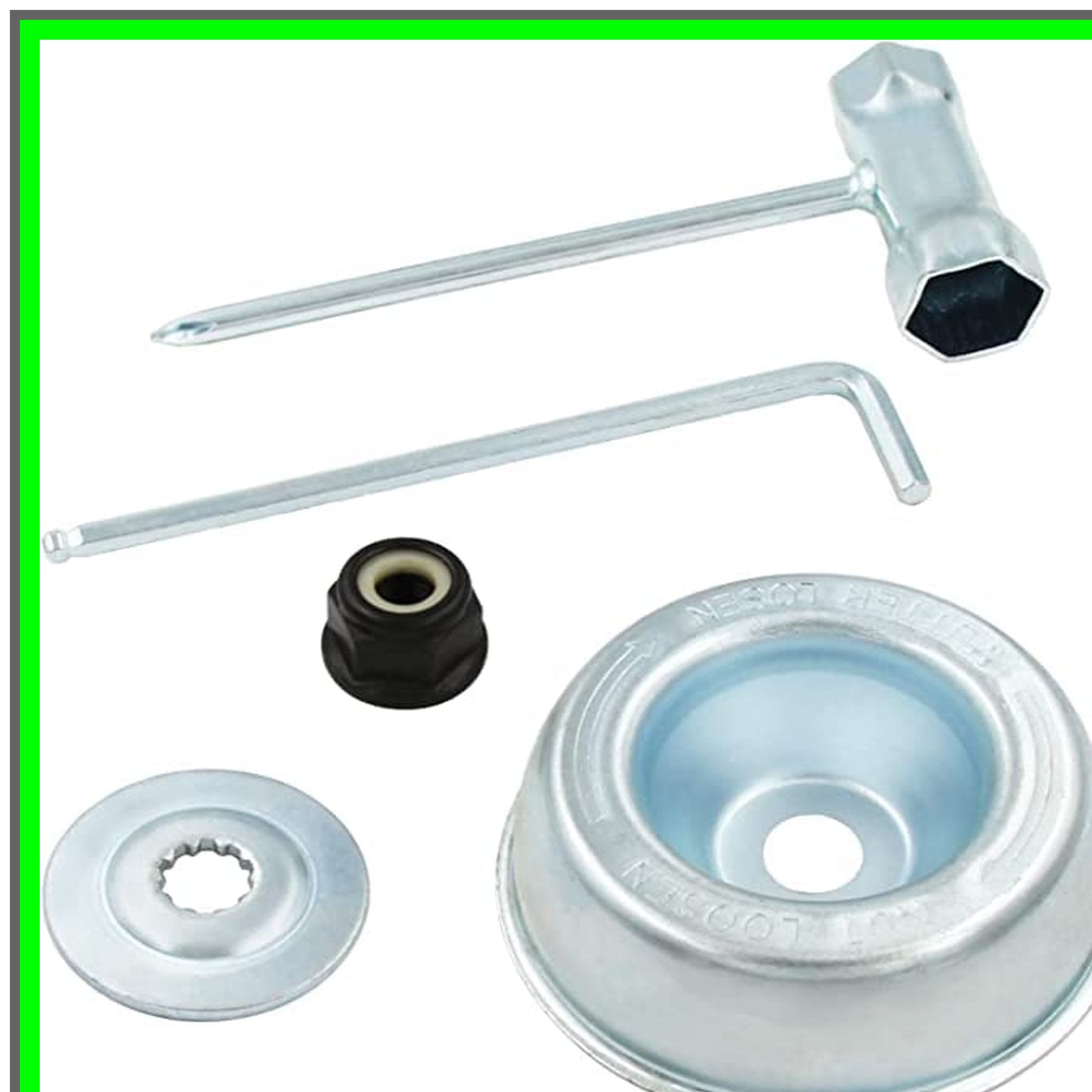 Elevate your outdoor maintenance game with our comprehensive Blade Adapter Attachment Maintenance Kit, meticulously designed for a range of Stihl trimmers and brush cutters. This essential kit is compatible with models including FS55, FS56, FS70R, FS90R, and many more, ensuring you have the right tools for optimal performance.Crafted for durability and efficiency, this maintenance kit includes a high-quality thrust washer, rider plate, collar nut, and a precision wrench. Each component is engineered to withstand the rigors of heavy-duty use, providing you with the reliability you need for your landscaping tasks. The thrust washer ensures smooth operation, while the rider plate enhances stability during cutting, allowing for a seamless experience.Whether you're a professional landscaper or a weekend warrior, this kit simplifies the maintenance process, helping you keep your equipment in peak condition. The included wrench makes installation and adjustments a breeze, saving you time and effort. Investing in this maintenance kit not only prolongs the life of your equipment but also enhances its performance, ensuring you achieve the best results every time. Say goodbye to downtime and hello to efficiency with our Blade Adapter Attachment Maintenance Kit. Perfect for anyone looking to maintain their Stihl trimmer or brush cutter, this kit is a must-have for effective outdoor maintenance. Don’t let wear and tear slow you down—equip yourself with the tools you need to tackle any job with confidence. Order your maintenance kit today and experience the difference in performance and reliability!