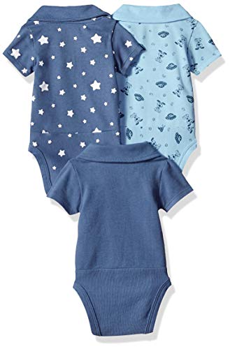 Uni -Baby Ultimate Baby Flexy 3 Pack Short Sleeve Polo Bodysuits (Sky, 0-6 months)
