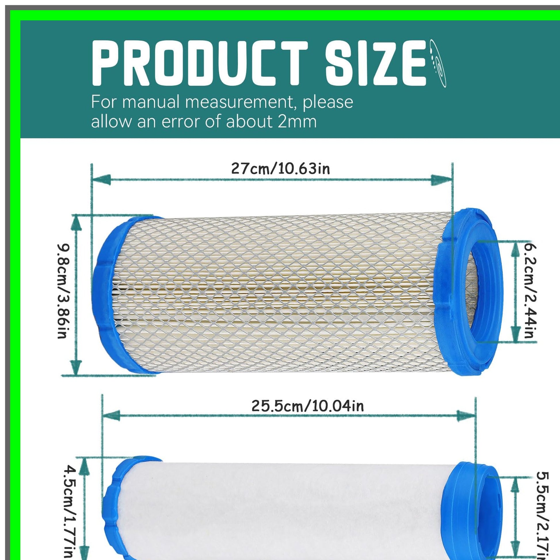 Introducing the ultimate air filter solution designed to enhance the performance of your outdoor power equipment. This high-quality inner air filter is engineered to replace a wide range of OEM parts, ensuring compatibility with numerous brands including Ariens, Bobcat, Briggs & Stratton, Exmark, Ferris, and many more. With part numbers such as 21536900, 21538700, and 4236, this filter is a versatile choice for various models, including popular mowers and compact tractors.Crafted for durability and efficiency, this air filter effectively traps dust, dirt, and debris, promoting optimal airflow and engine performance. Whether you're maintaining your lawn or tackling heavy-duty tasks, this filter ensures your equipment runs smoothly, extending its lifespan and reducing maintenance costs. The outer pre-filter complements the inner filter, providing an additional layer of protection against contaminants. It replaces part numbers like 00181071 and 4235, making it an essential addition to your maintenance routine. Designed to fit models such as the z810a, z820a, and 3005 front mowers, this filter is perfect for both residential and commercial use.Our commitment to quality means that if you encounter any issues with your purchase, we offer a hassle-free return and exchange service. Invest in the longevity and efficiency of your equipment with this reliable air filter, and experience the difference in performance. Keep your machinery running at its best with this essential maintenance component, ensuring you can tackle any job with confidence. Upgrade your air filtration system today and enjoy cleaner air intake for your engines!