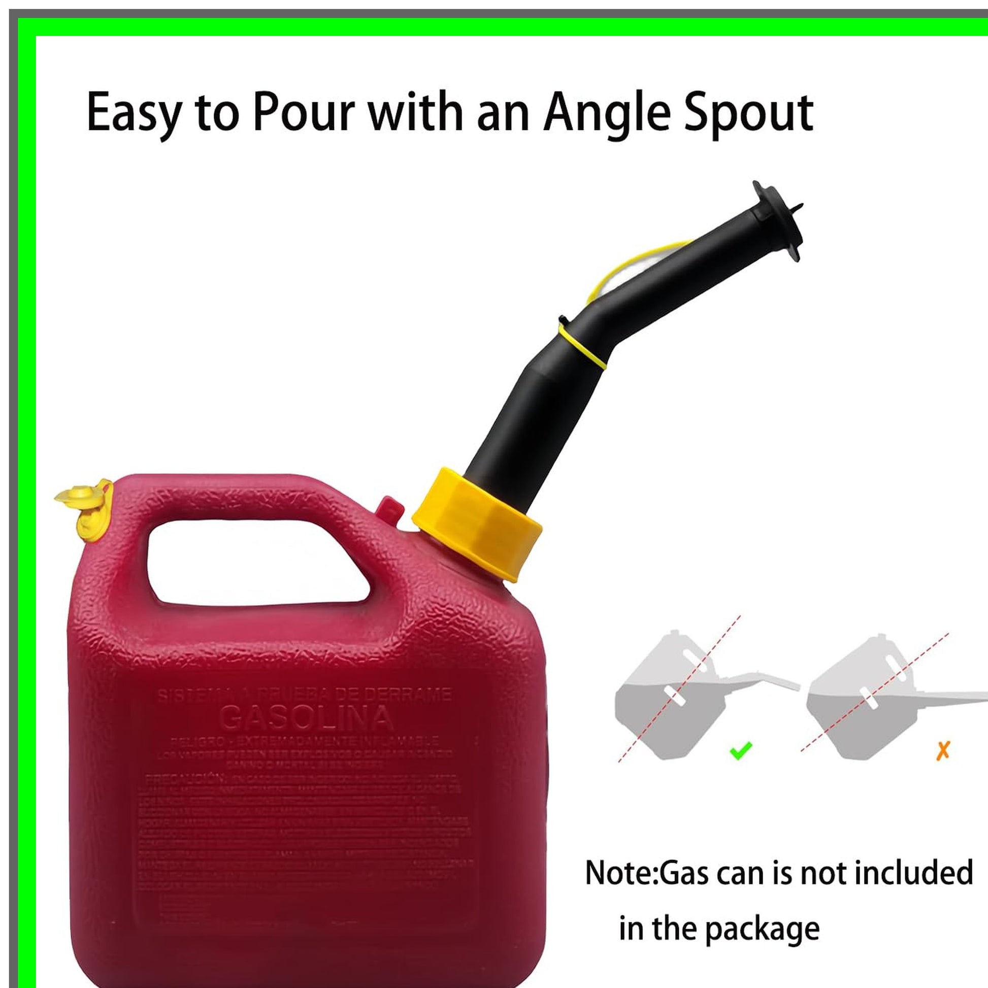 Revitalize your fuel storage with our premium replacement gas can spout, designed specifically for portable plastic gas and water containers manufactured before January 1, 2009. Crafted from high-quality, flexible plastic, this durable spout ensures a smooth and efficient pouring experience, making it an essential accessory for any outdoor enthusiast or DIYer.Equipped with a built-in filter screen and flame arrestor, this spout prioritizes safety while delivering a steady flow of fuel. The kit includes a vent cap that enhances fuel dispensing, allowing for a consistent and even pour every time. With two distinct base caps—black for fine threads compatible with brands like Blitz and Gott, and yellow for coarse threads suitable for Midwest Scepter—you can easily customize your setup to fit various container types.Installation is a breeze! Simply start with an empty can, drill a precise 1/2" hole above the fill line, and insert the vent cap. For best results, we recommend starting with a smaller drill bit and gradually increasing to ensure a snug fit. The yellow vent caps feature a retaining lip to prevent accidental dislodging, providing peace of mind during use.Specifications include a nozzle length of approximately 7 inches and a width of 1.5 inches, making it versatile for containers ranging from 1 to 5 gallons. The black fine threads measure 1.88 inches in diameter, while the yellow coarse threads are 1.77 inches, ensuring compatibility with a wide array of plastic cans.Whether you're storing gasoline, diesel, kerosene, or mixed fuels, this replacement spout is your go-to solution for efficient fuel management. Upgrade your fuel containers today and experience the convenience and reliability of our expertly designed gas can spout!