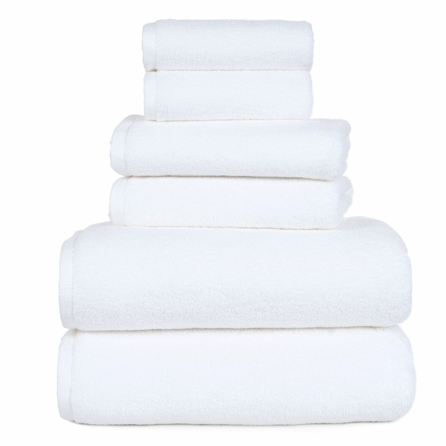 This 6-piece towel set is crafted from 100% cotton with a zero-twist design, offering a plush, soft, and highly absorbent experience. The set includes two bath towels, two hand towels, and two washcloths, all in classic white. These towels are lightweight yet durable, providing excellent breathability and comfort. Their heavy-duty construction ensures they remain plush and absorbent even after multiple washes. The zero-twist cotton enhances moisture-wicking capabilities, making them practical for everyday use. Perfect for any bathroom or washroom, this set combines functionality with a clean, simple aesthetic. Designed for long-lasting softness and performance, these towels are an ideal addition to your home. Each piece is carefully manufactured to meet high-quality standards, ensuring durability and consistent absorbency. Elevate your bathroom essentials with this versatile, comfortable, and stylish towel set.