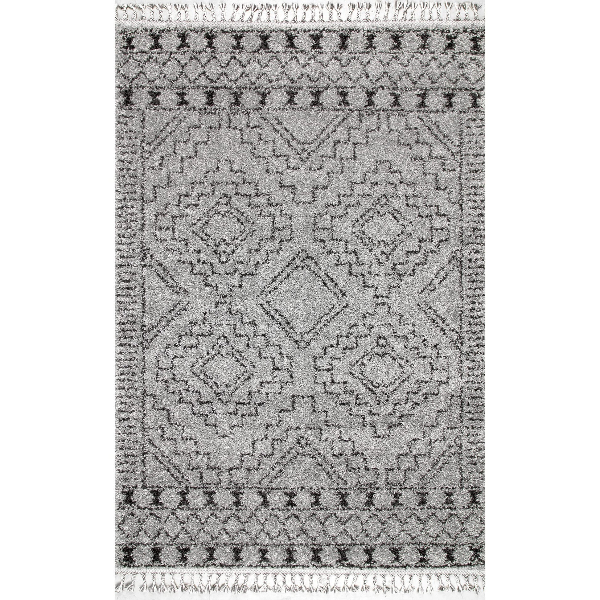 Vasiliki Moroccan Tribal Shag Area Rug, 2' x 3', Grey