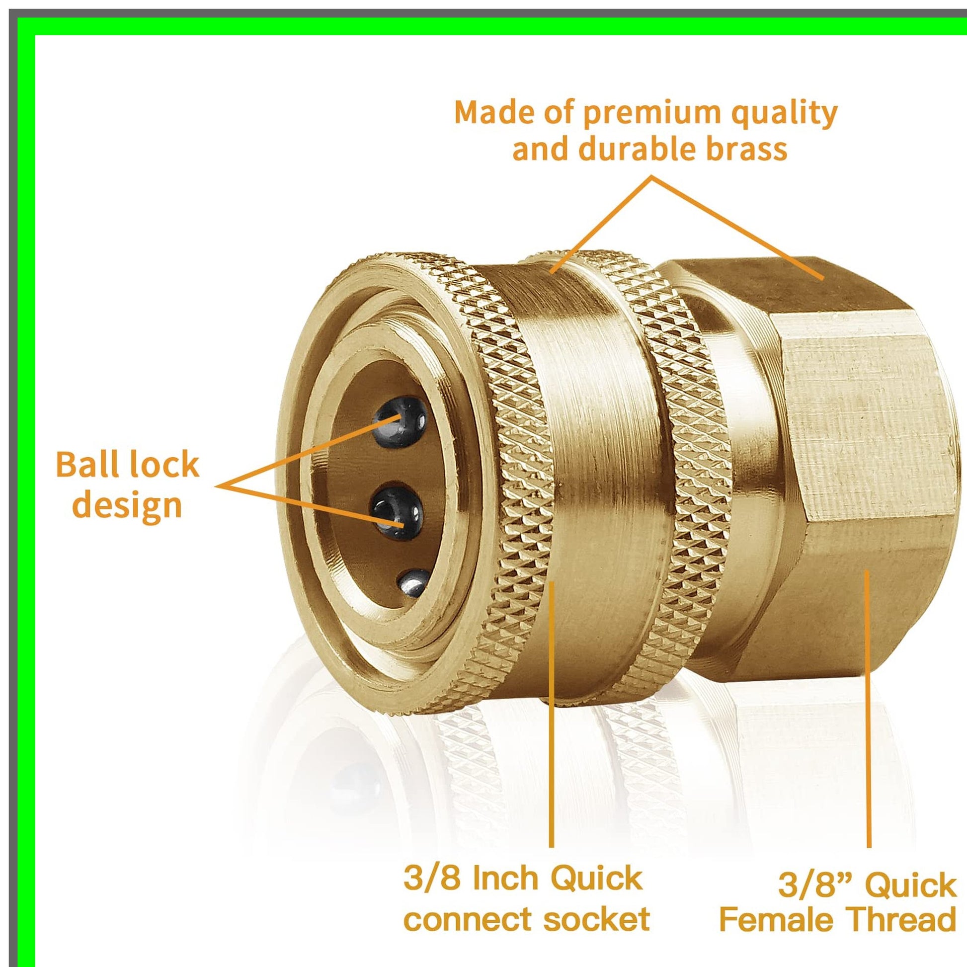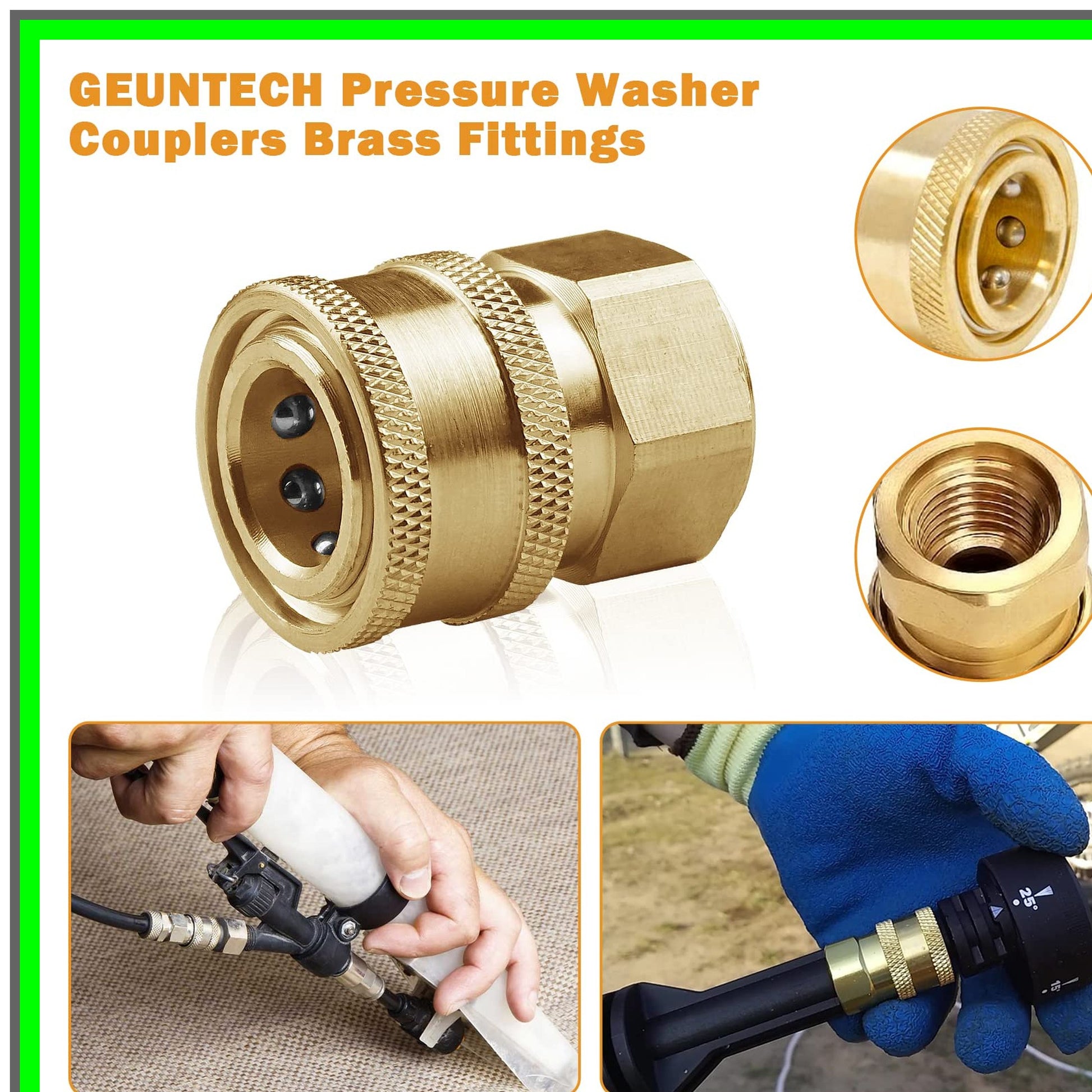 Elevate your pressure washing experience with our premium Quick Disconnect Couplers, designed for seamless connectivity and maximum efficiency. Crafted from high-quality materials, these couplers boast exceptional resistance to corrosion, ensuring durability and longevity even under the most demanding conditions. Available in two versatile sizes—1/4 inch and 3/8 inch—these couplers feature female NPT threads, making them compatible with a wide range of high-pressure washers and accessories. With a robust working pressure rating of up to 5,000 PSI, you can trust these couplers to handle heavy-duty tasks with ease. The innovative quick connect design allows for effortless assembly and disassembly, enabling you to switch between nozzles and spray guns in seconds. This feature is particularly beneficial for professionals and DIY enthusiasts alike, streamlining your workflow and saving you valuable time on the job. Each package includes two couplers, giving you the flexibility to choose the size that best fits your needs. Whether you opt for the 1/4 inch or the 3/8 inch version, you can be confident in the quality and performance of your purchase. Before making your selection, please ensure you verify the specifications to guarantee compatibility with your equipment. Should you have any questions or require assistance, our dedicated support team is ready to help, responding to inquiries within 24 hours. Transform your pressure washing tasks with our reliable Quick Disconnect Couplers—your ultimate solution for efficient and hassle-free connections!