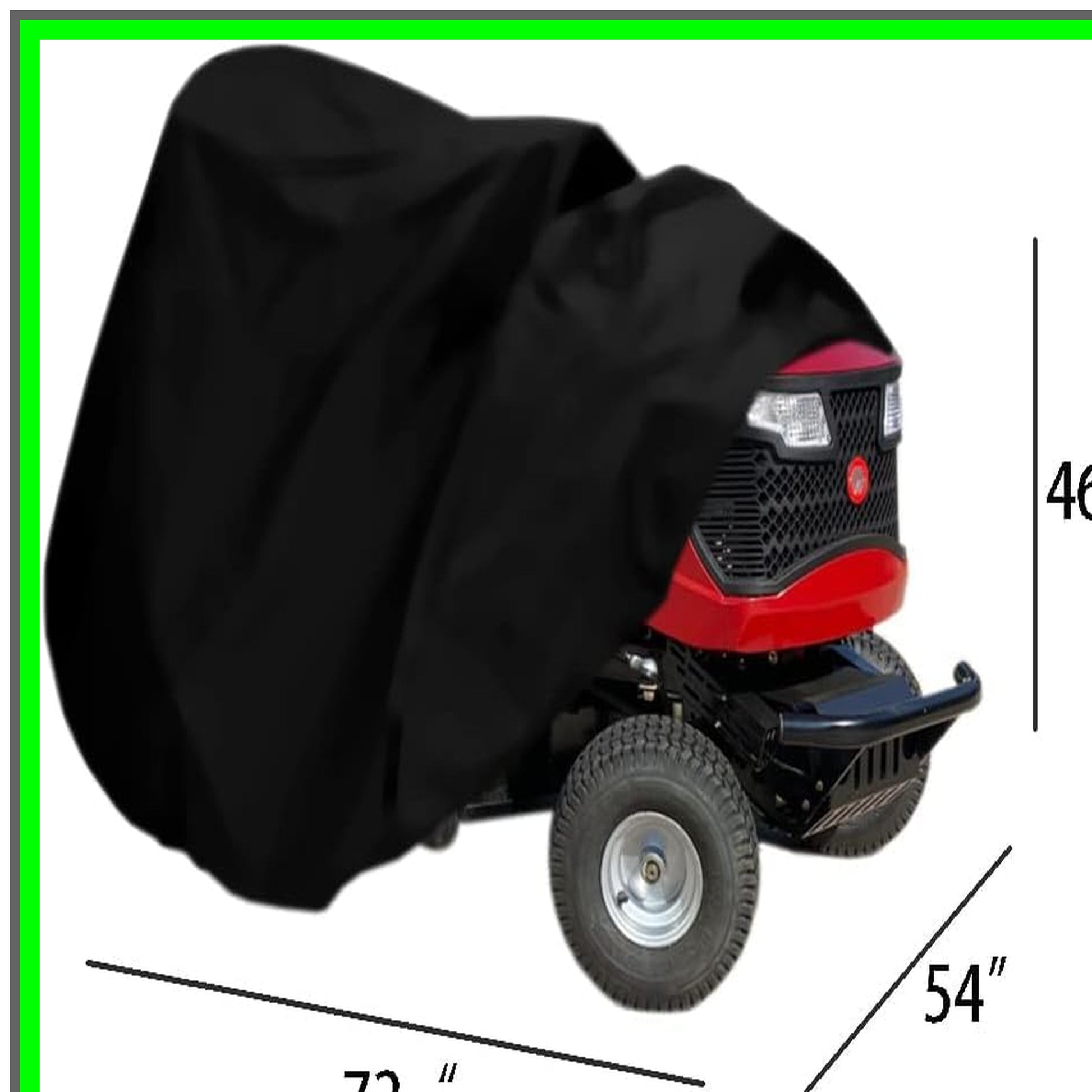 Introducing the ultimate solution for safeguarding your riding lawn mower: a premium heavy-duty cover designed specifically for rider garden tractors. This robust outdoor cover measures 72 inches in length, 54 inches in width, and 46 inches in height, ensuring a snug fit for most riding mowers. Crafted from high-quality, weather-resistant materials, this cover provides unparalleled protection against the elements. Whether it’s rain, snow, or intense UV rays, your mower will remain shielded from water damage, fading, and deterioration. The durable fabric is also resistant to dust and dirt, keeping your equipment clean and ready for action whenever you need it.Designed with practicality in mind, this cover features reinforced seams and an adjustable strap system that secures it firmly in place, even in windy conditions. The lightweight yet sturdy construction makes it easy to put on and take off, allowing for quick access to your mower without hassle.Ideal for both residential and commercial use, this riding lawn mower cover is perfect for homeowners looking to extend the life of their equipment or landscapers needing reliable protection for their tools. Its sleek design not only enhances the aesthetic of your outdoor space but also ensures that your mower remains in peak condition, ready to tackle any lawn care task.Invest in the longevity of your riding lawn mower with this essential outdoor cover. Protect your investment from the harsh elements and keep it looking new for years to come. Don’t let the weather dictate your lawn care routine—choose the ultimate protection for your mower today!