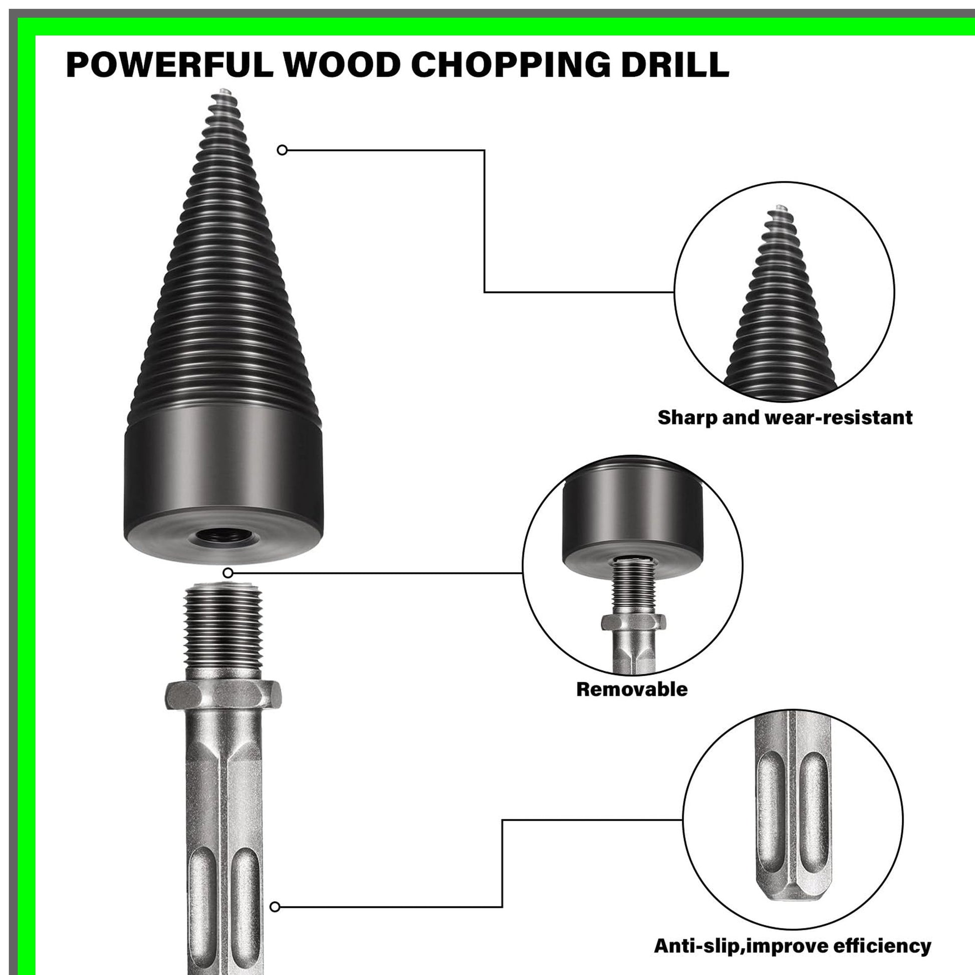 Heavy Duty Wood Splitter Drill Bit for Hand Drills - 32mm Cone Driver