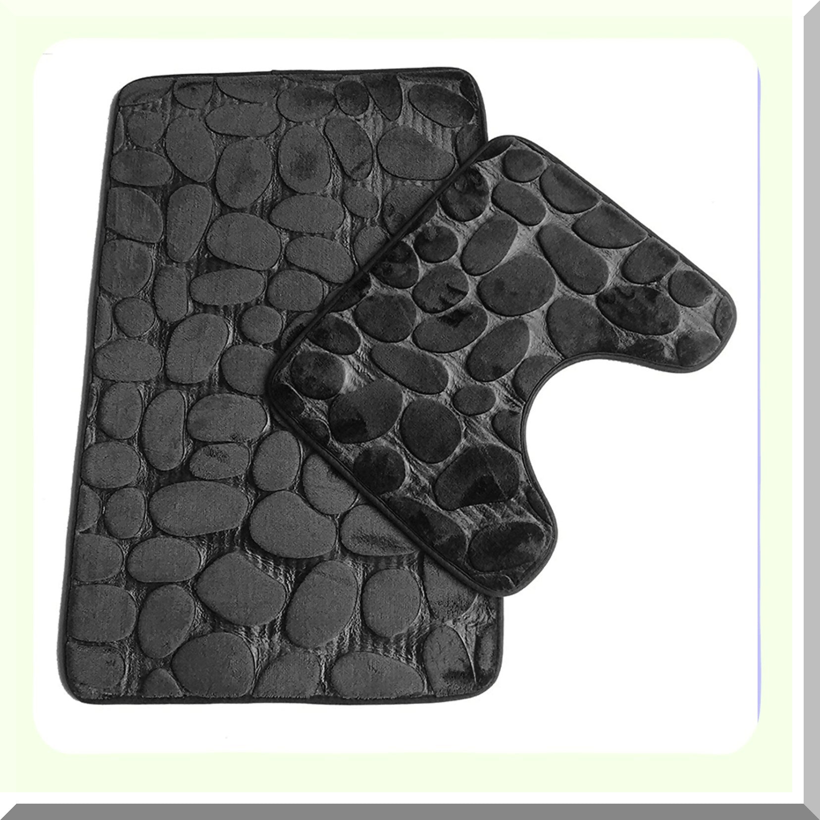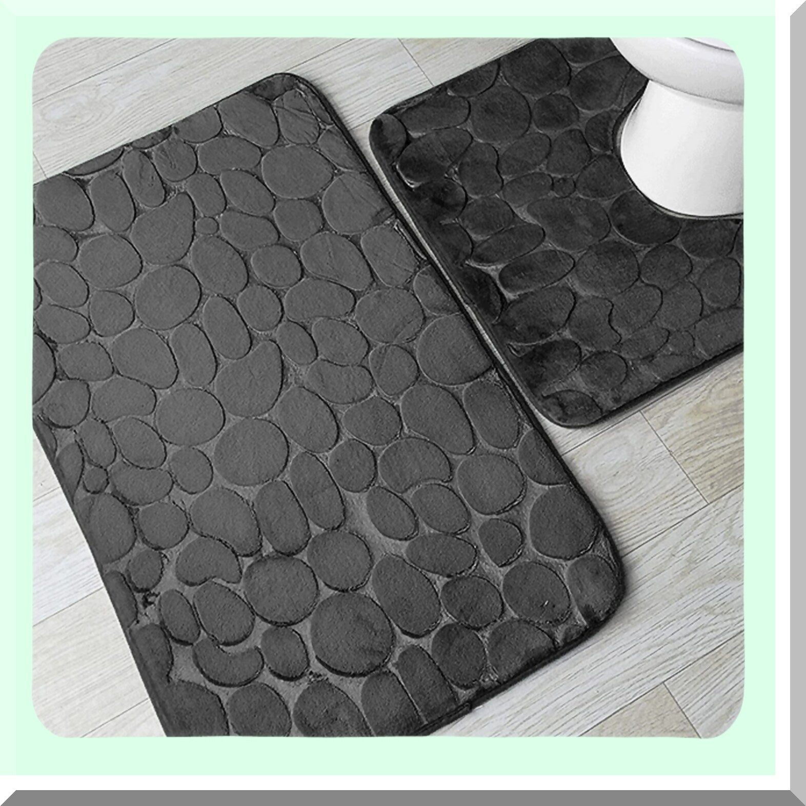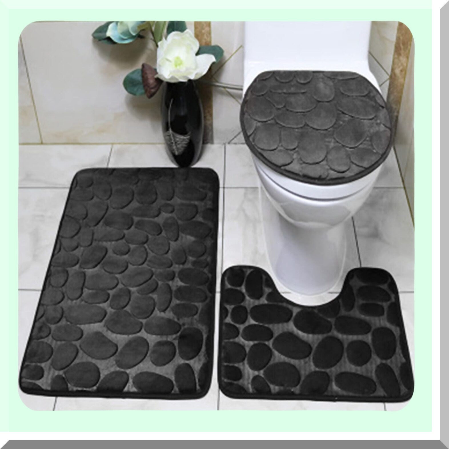 This bathroom non-slip mat set includes three pieces: a floor mat, a lid cover, and a bath mat, each in different shapes. Designed to protect your floors from drips and damage, these mats help keep your bathroom dry and safe. The non-slip cobblestone embossed texture on the back provides excellent grip, reducing the risk of slipping when wet. Made from polyester fiber, the mats are soft, fluffy, and comfortable to step on, making them suitable for everyday use and travel. The floor mat measures approximately 50 x 80cm, the lid cover about 38 x 43cm, and the bath mat around 50 x 40cm. Weighing approximately 650g, these mats are crafted with quality craftsmanship, ensuring safety and practicality. Perfect for adding comfort and safety to your bathroom or kitchen, this set combines functionality with a cozy feel.