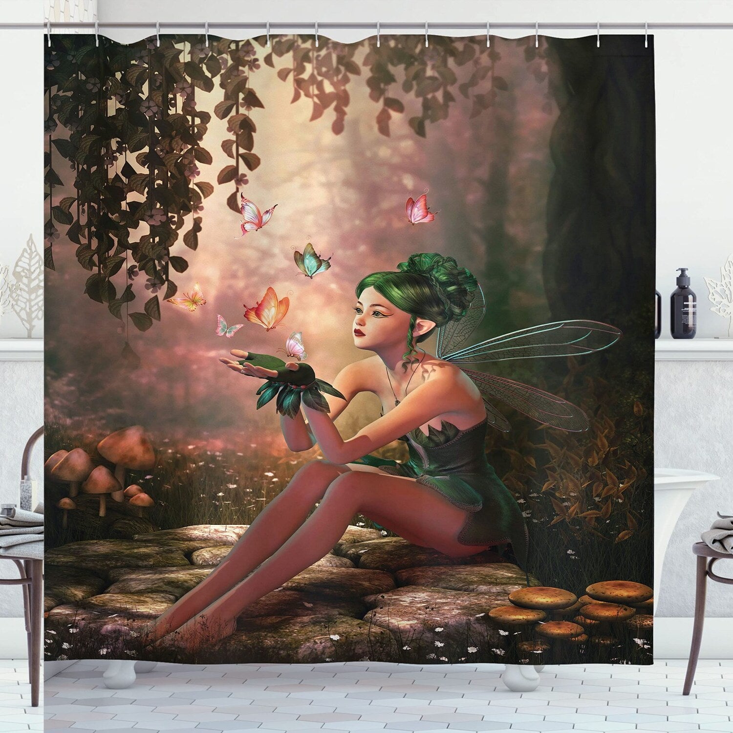 Transform your bathroom with this decorative shower curtain featuring a digital composition of girl wings, butterflies, and an elven creature. Measuring 69 inches wide by 70 inches long, it offers a vibrant, high-resolution design that creates a realistic, 3D-like experience. The colors are fade-resistant thanks to advanced digital printing methods, ensuring long-lasting brightness. Made from water-resistant fabric, it dries quickly after showers and is neither too thin nor too thick, adding depth and value to your decor. The set includes hooks for easy installation. Its modern design complements various bathroom styles and color schemes, making it a quick, affordable way to refresh your space. Perfect for master baths, guest bathrooms, or hotel settings, this curtain brings a touch of fantasy and tranquility to your daily routine. A versatile gift idea for loved ones or a personal treat, it suits all ages and interests, enhancing any bathroom environment.