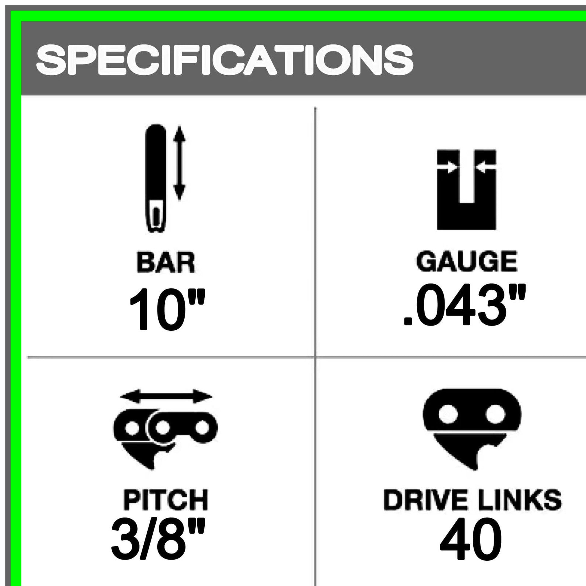 10-Inch Chainsaw Guide Bar and Chain Replacement for WORX RYOBI EGO Makita SKIL