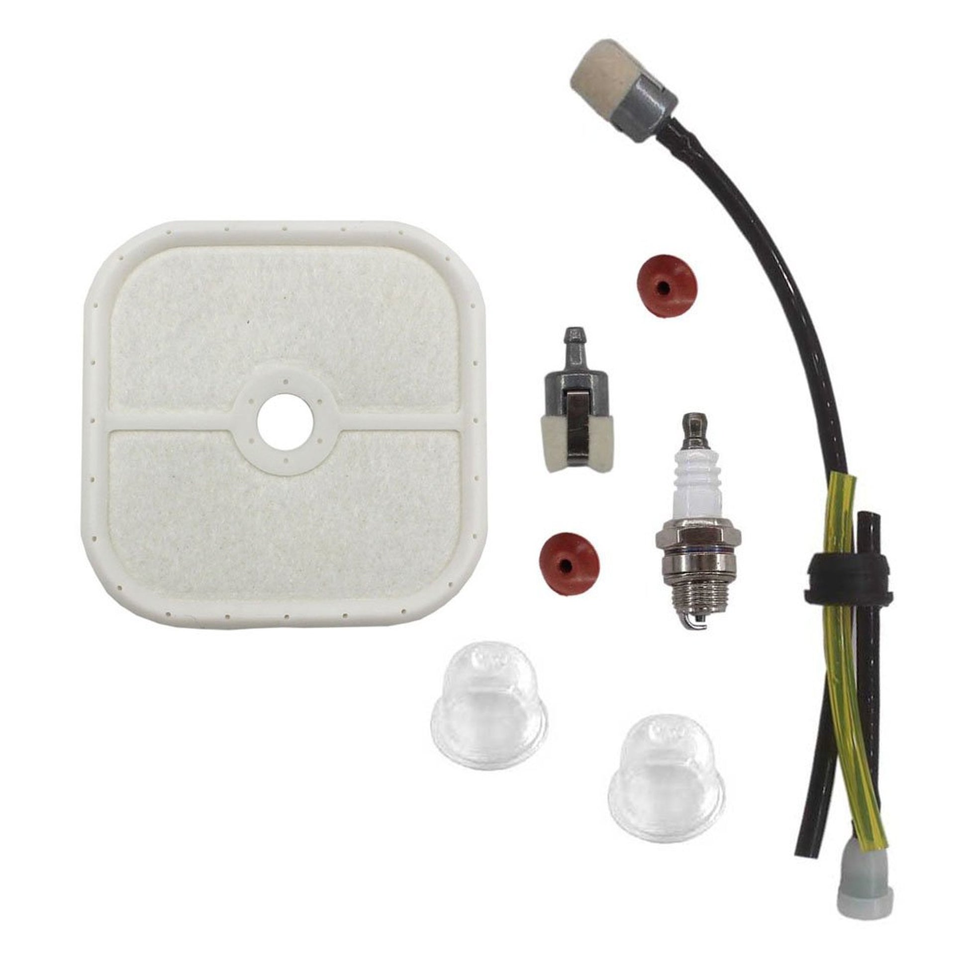 Revitalize your outdoor power equipment with our comprehensive Tune-Up Kit, meticulously designed for optimal performance and longevity. This essential kit is compatible with a range of models, including the ES-255, PB-251, PB-255, PB-265L, PB-255LN, PB-265LN, and more, ensuring that your tools are always ready for action.Each kit includes high-quality components such as an air filter, spark plug, check valve, primer bulb, fuel filter, fuel line, and grommet. These parts work in harmony to enhance engine efficiency, improve fuel consumption, and reduce emissions, making it an eco-friendly choice for your maintenance needs. The air filter ensures that your engine breathes clean air, preventing dirt and debris from causing damage. The spark plug ignites the fuel-air mixture for a powerful start every time, while the check valve maintains optimal fuel flow. The primer bulb simplifies starting, and the fuel filter keeps your fuel system clean, extending the life of your equipment.Whether you're a professional landscaper or a weekend warrior, this Tune-Up Kit is your go-to solution for keeping your equipment in peak condition. Easy to install, it empowers you to perform maintenance with confidence, saving you time and money on repairs. Donβt let wear and tear slow you down. Equip yourself with our Tune-Up Kit and experience the difference in performance and reliability. Perfect for seasonal maintenance or as a proactive measure, this kit is a must-have for anyone serious about their outdoor power tools. Get ready to tackle your next project with renewed vigor!