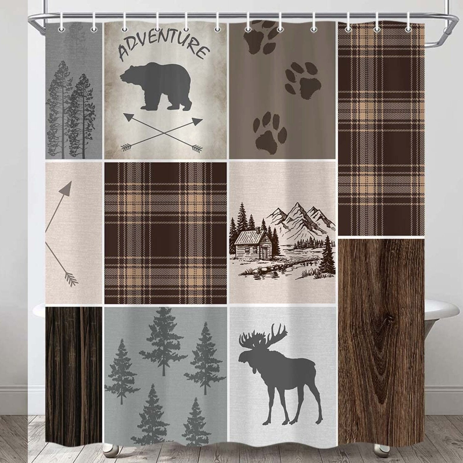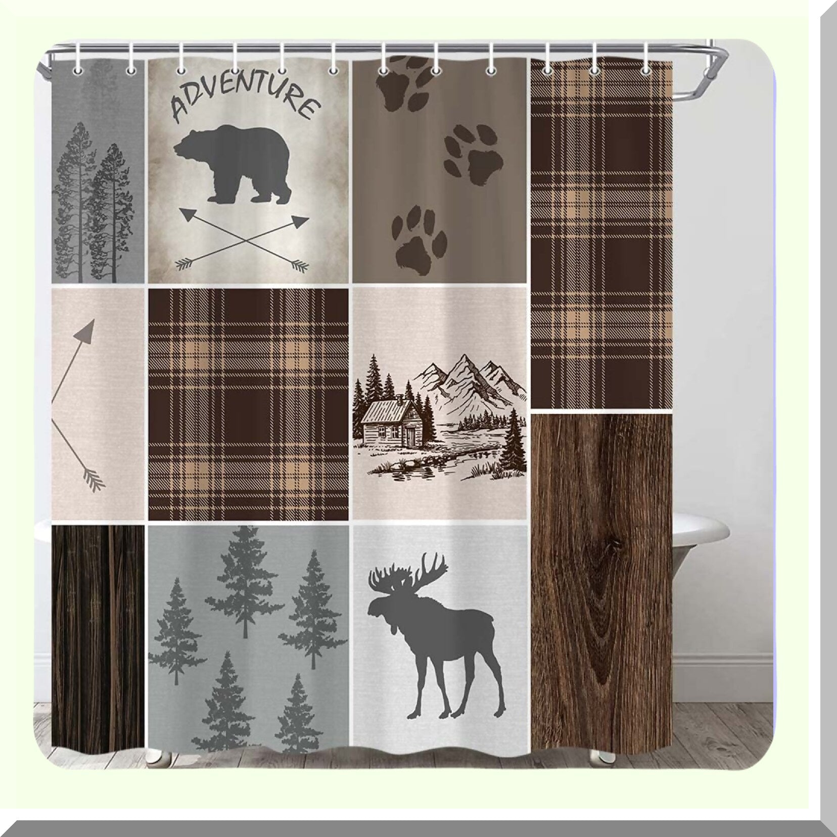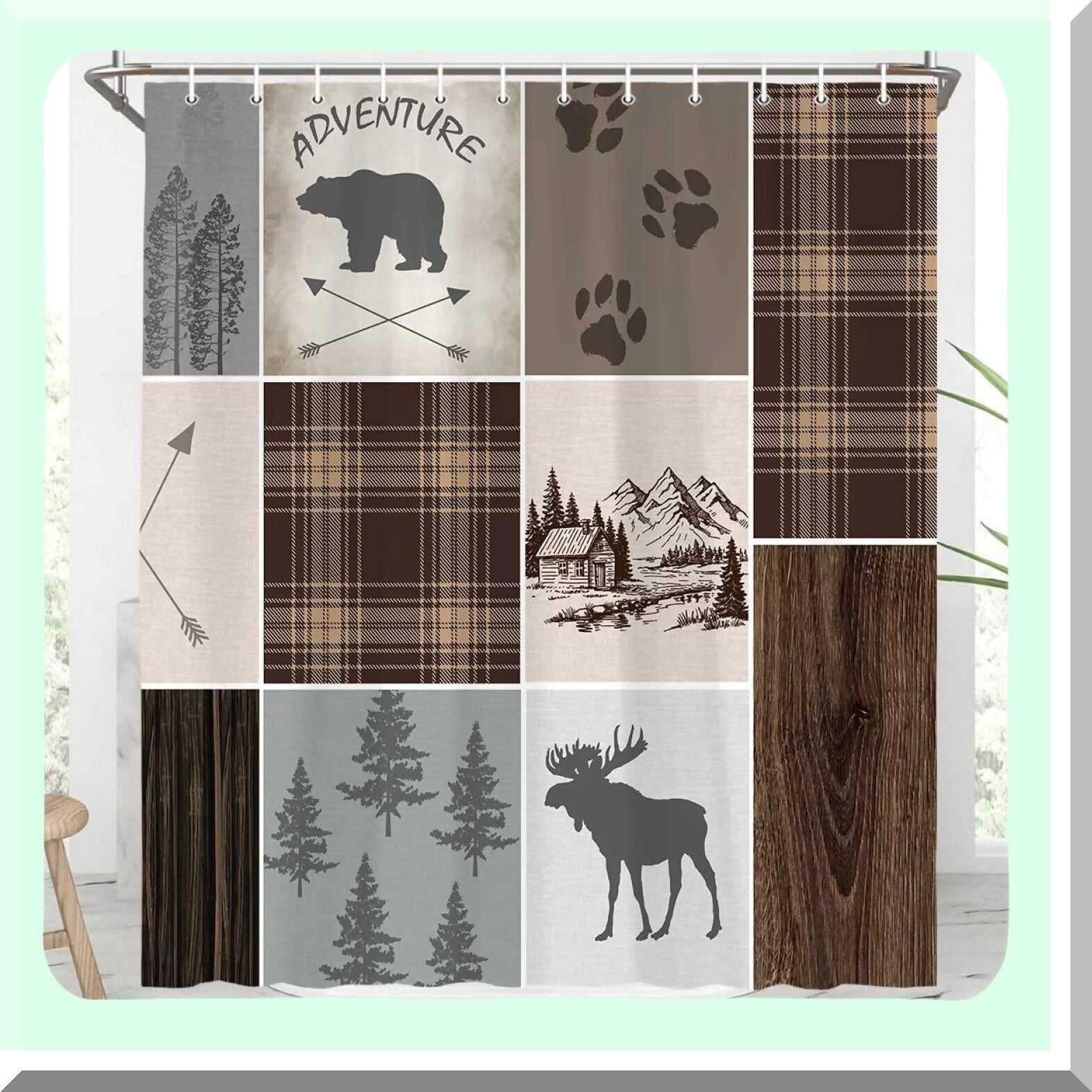 This cabin rustic shower curtain features a charming design with bears, deer, and wild animals, perfect for a country or lodge-themed bathroom. Made from durable polyester fabric, it measures 60x70 inches and showcases a classic plaid check pattern that adds a touch of adventure and rustic charm. The curtain comes with hooks for easy installation and is designed to enhance your bathroom decor with a natural, outdoors-inspired aesthetic. Its high-quality construction ensures long-lasting use, while the detailed print brings a cozy, wilderness vibe to your space. Ideal for those seeking a unique, nature-themed touch, this shower curtain combines style and practicality. Please note that all dimensions are measured manually with a slight deviation of 1-3mm, and colors may vary slightly due to lighting and display differences. Elevate your bathroom decor with this rustic, animal-themed curtain that offers both functionality and a touch of adventure.
