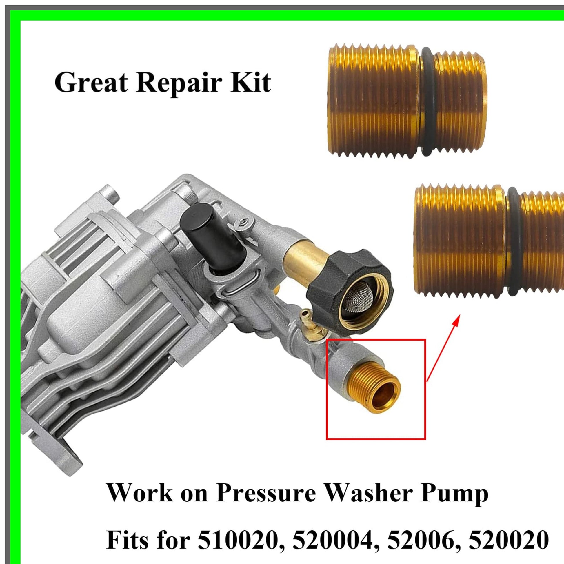 Elevate your pressure washing experience with our premium Water Outlet Kit, designed specifically for Axial Cam Pressure Washer Pumps. Crafted from durable aluminum, this kit not only boasts a striking gold finish but also ensures longevity and reliability in demanding conditions. This essential accessory is compatible with models 520004, 520006, and 520020, making it a versatile choice for various pressure washing needs. The package includes a high-quality water outlet fitting and O-ring seals, both engineered to withstand high pressure and provide a secure, leak-free connection. With the ability to connect a high-pressure hose featuring an M22 female thread, this outlet kit enhances your pressure washer's performance, allowing for efficient cleaning of driveways, patios, vehicles, and more. Before making your purchase, please verify your model number to ensure compatibility. Our dedicated customer support team is ready to assist you with any inquiries, ensuring you have a seamless experience from start to finish. Upgrade your pressure washer with our Water Outlet Kit and enjoy the benefits of enhanced functionality and durability. Perfect for both DIY enthusiasts and professionals, this kit is a must-have for anyone looking to maximize their cleaning power. Donβt miss out on the opportunity to transform your pressure washing tasks into effortless achievements!