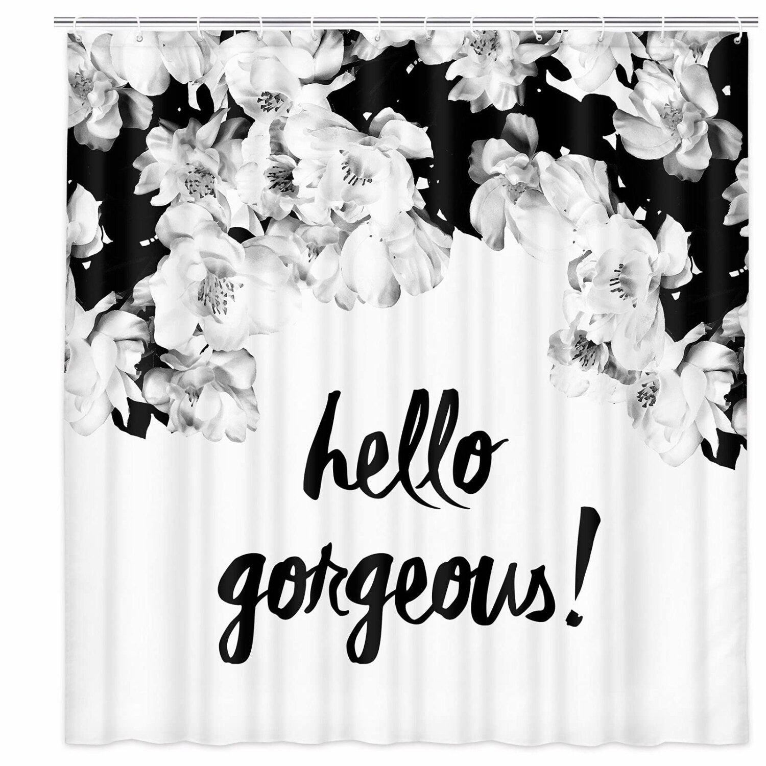 Hello Gorgeous Black and White Flower Shower Curtain 72x72in