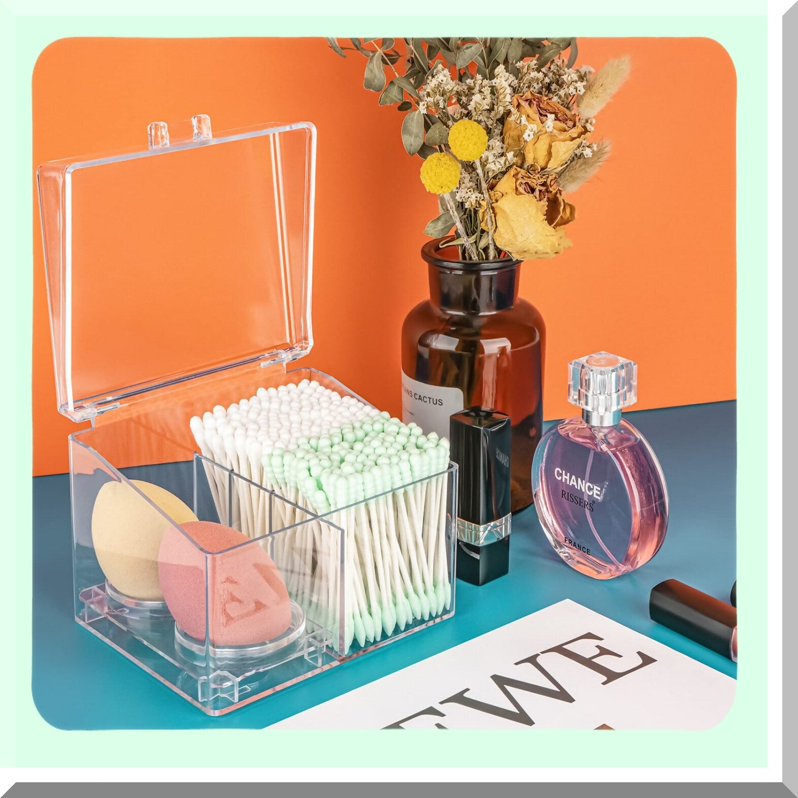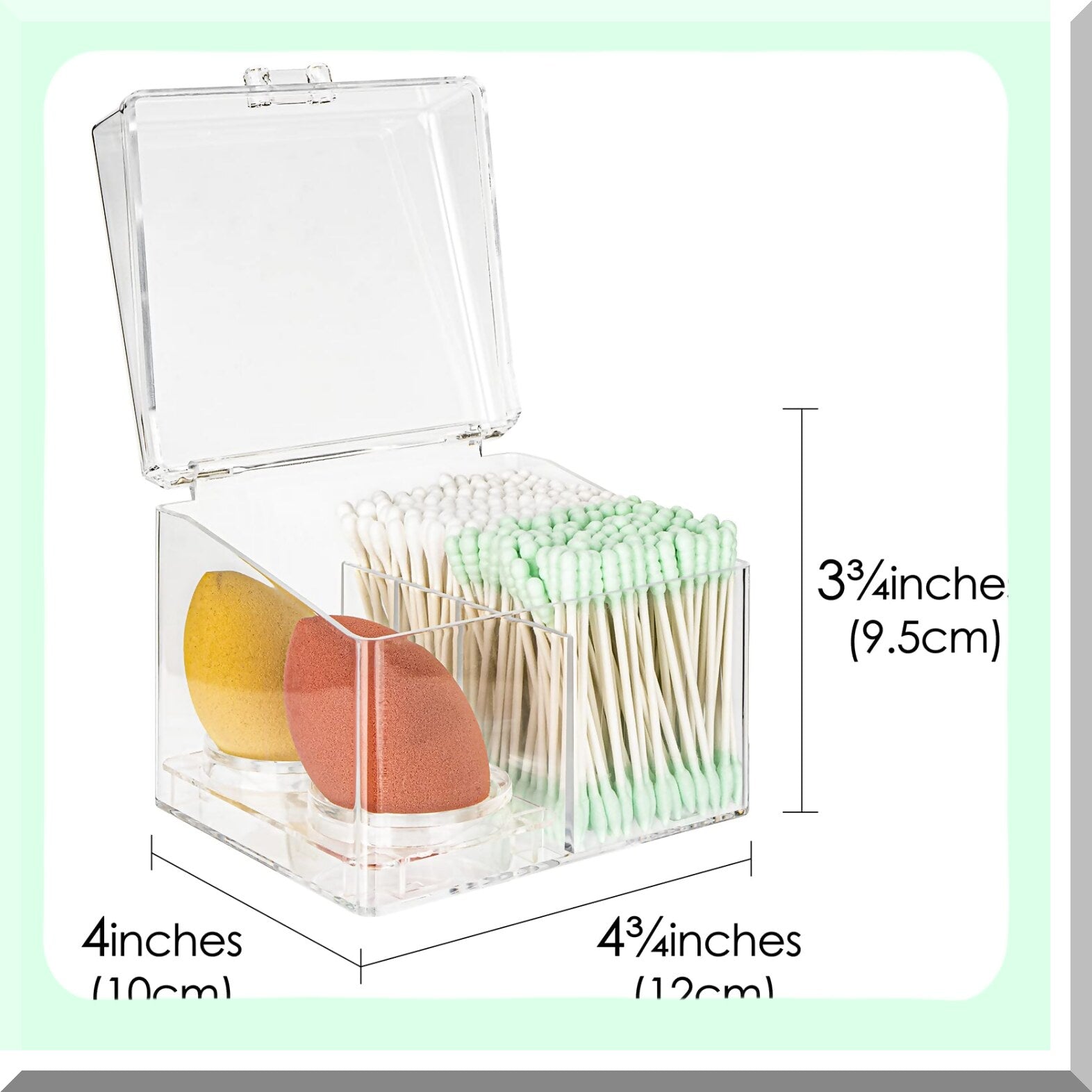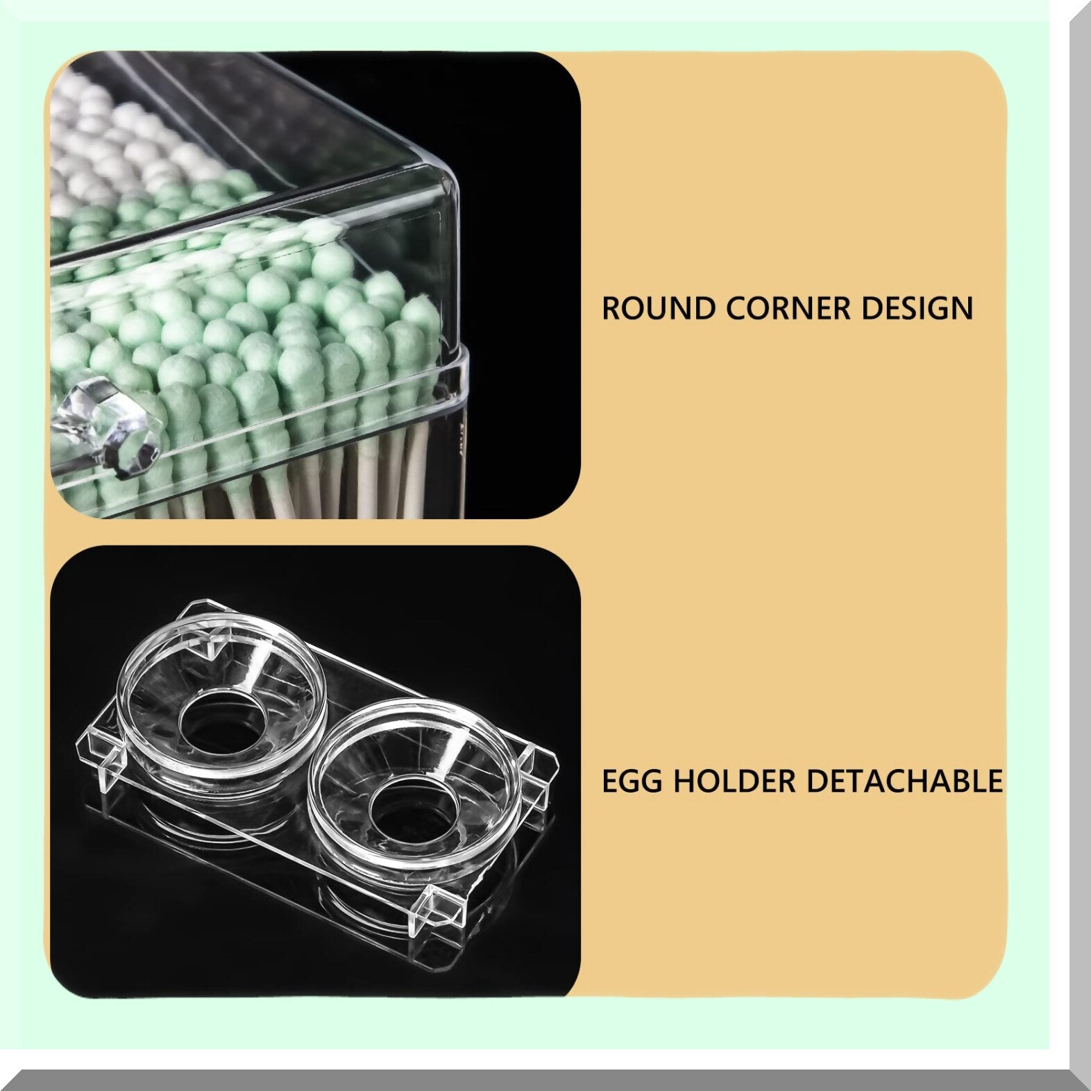 This clear Qtip holder with lid and detachable beauty egg tray offers a practical storage solution for your bathroom or vanity. Made of durable plastic, it features three separate compartments to organize cotton swabs, makeup pads, or other small cosmetic items. Its compact design helps save space on your bathroom sink, makeup table, or desk. The lid keeps contents clean and protected, while the detachable beauty egg tray provides easy access and organization. Please note that the Qtip holder is the only item included; other items shown are not part of the package. This small cotton ball dispenser is ideal for keeping your essentials neatly stored and readily accessible, making your daily routine more organized and efficient. Its transparent design allows you to see the contents at a glance, ensuring you always know when it's time to refill. Perfect for personal use or as a thoughtful gift.