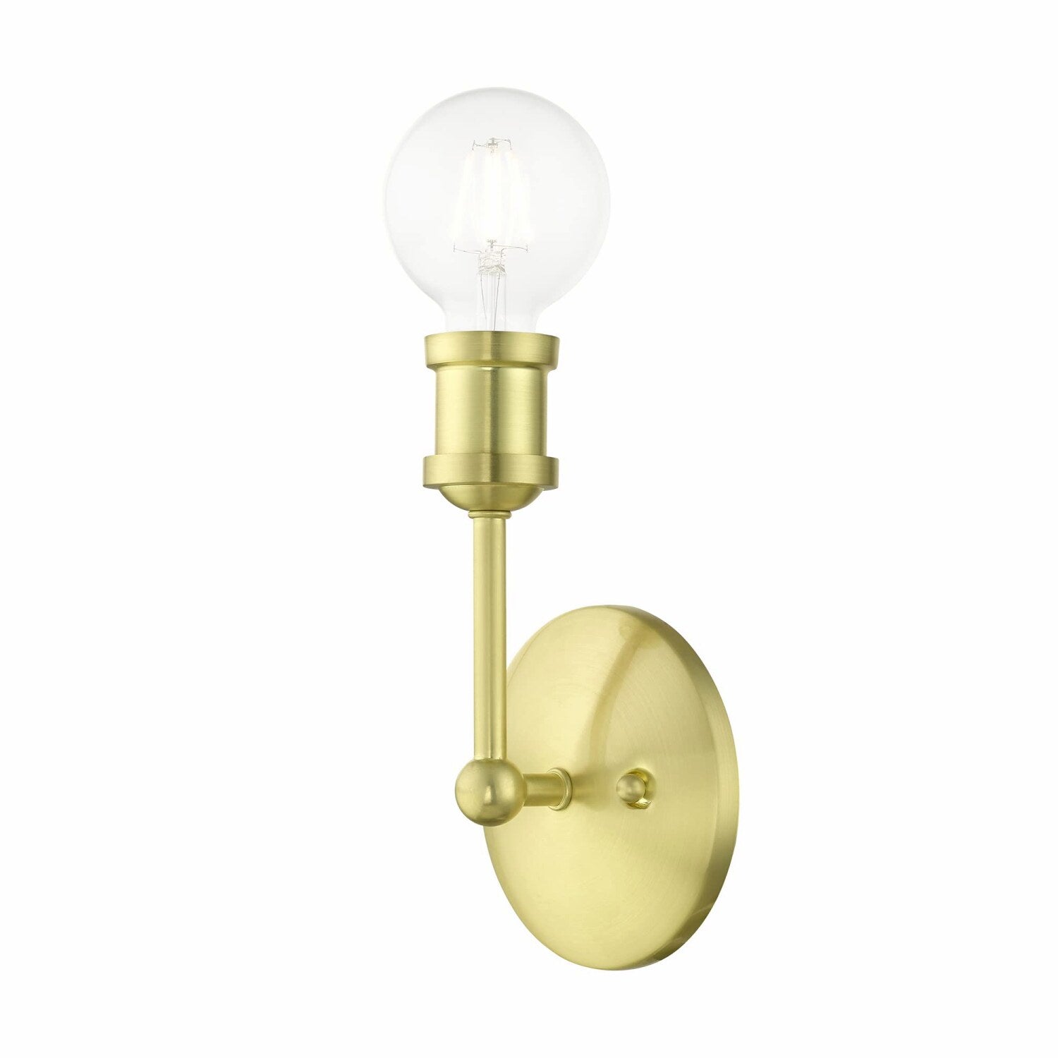 The Lansdale 1 Light ADA Vanity Sconce features a simple yet detailed design that enhances contemporary or urban interiors. Its dimensional form and exposed bulb create a playful mood, adding visual interest to bedrooms, hallways, or bathroom vanities. The fixture is finished in a brushed finish, emphasizing its sleek and modern aesthetic. Designed to meet ADA requirements, this single-light sconce offers a stylish lighting solution with a focus on clean lines and subtle sophistication. Its versatile design makes it suitable for various interior settings, providing both functional illumination and decorative appeal. The combination of form and finish ensures it complements a range of decor styles, making it a practical and attractive addition to any space.