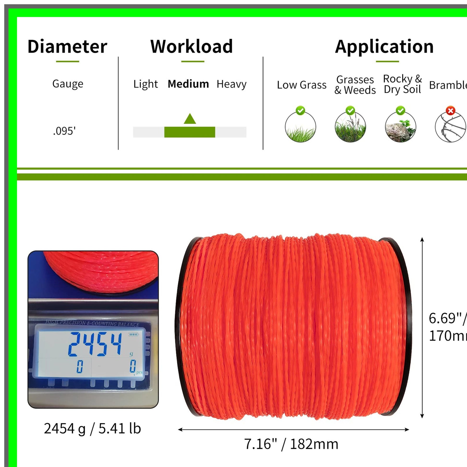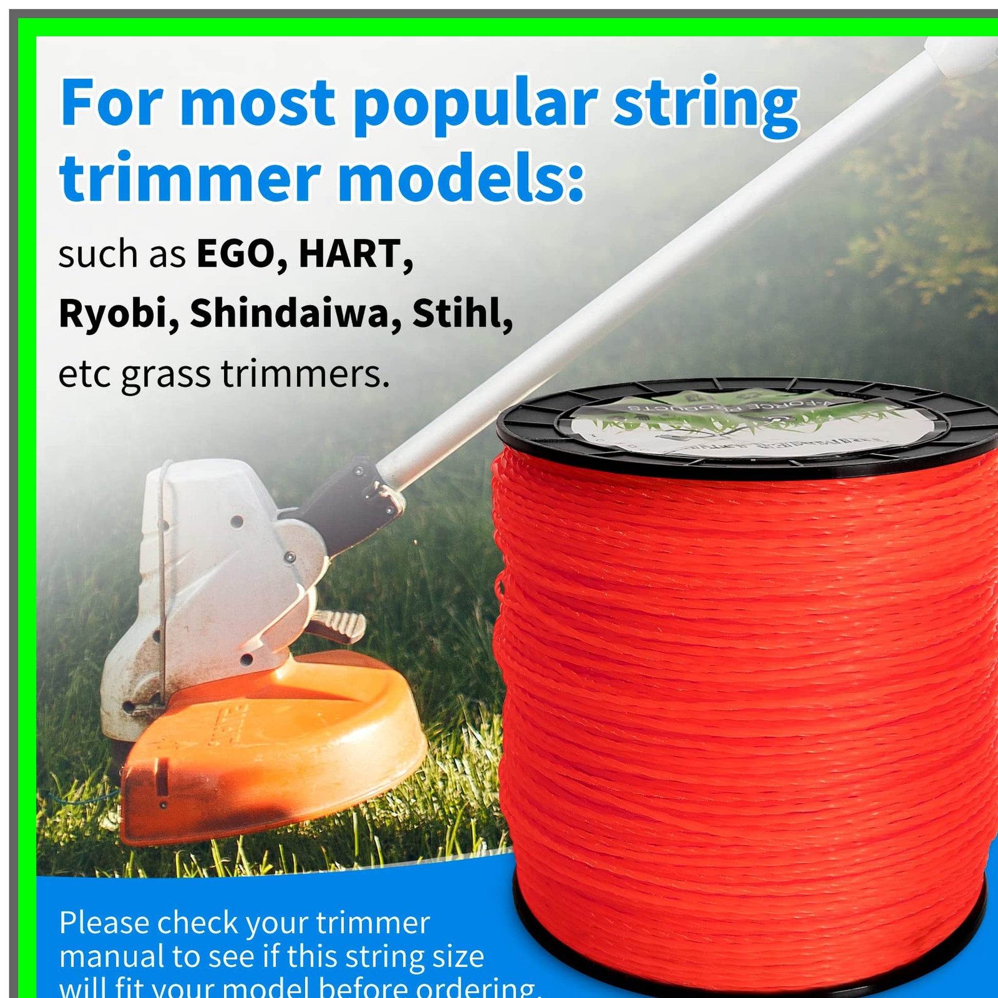 Transform your lawn care routine with our premium Universal String Trimmer Line, expertly designed to fit a wide range of popular trimmer models, including EGO, HART, Ryobi, Shindaiwa, and Stihl. This versatile trimmer line features a robust 0.095-inch diameter, making it ideal for tackling medium grass and weeds with ease. While it excels in regular maintenance, itβs not intended for heavy-duty tasks involving thick brush.With an impressive length of 1,765 feet, this generous spool ensures you have enough line to keep your yard looking pristine without the hassle of frequent trips to the store. Enjoy exceptional value for your money as you power through your landscaping tasks with confidence.Our innovative twisted design minimizes air resistance, significantly reducing vibrations and noise levels during operation. This makes it an excellent choice for residential areas where sound can be a concern. Additionally, the twisted geometry enhances battery efficiency, allowing for longer runtime and improved cutting performance, resulting in a clean and even cut every time.Crafted from durable nylon, this trimmer line is built to withstand the rigors of outdoor use. The striking red color not only adds a touch of style but also makes it easy to spot in your tool shed or garage.Each package includes one roll of string trimmer line, weighing 5 lbs and measuring 1,765 feet in length. Before purchasing, please verify the compatibility of the line diameter with your specific trimmer model to ensure optimal performance. For installation, we recommend cutting approximately 10 to 12 feet of line, ensuring both sides are equal in length to prevent any imbalance during operation.Elevate your lawn care experience with our Universal String Trimmer Line and achieve a beautifully manicured yard effortlessly!