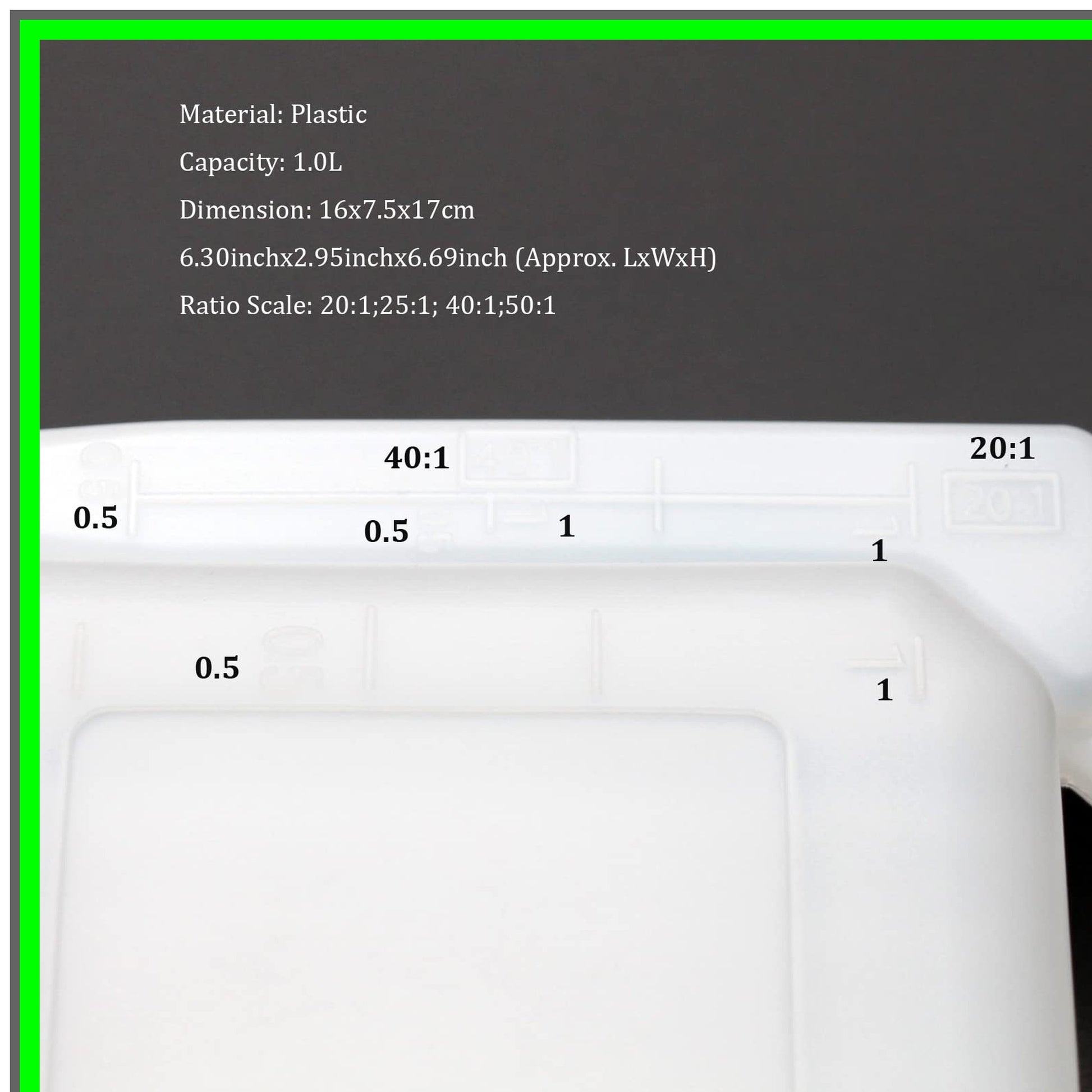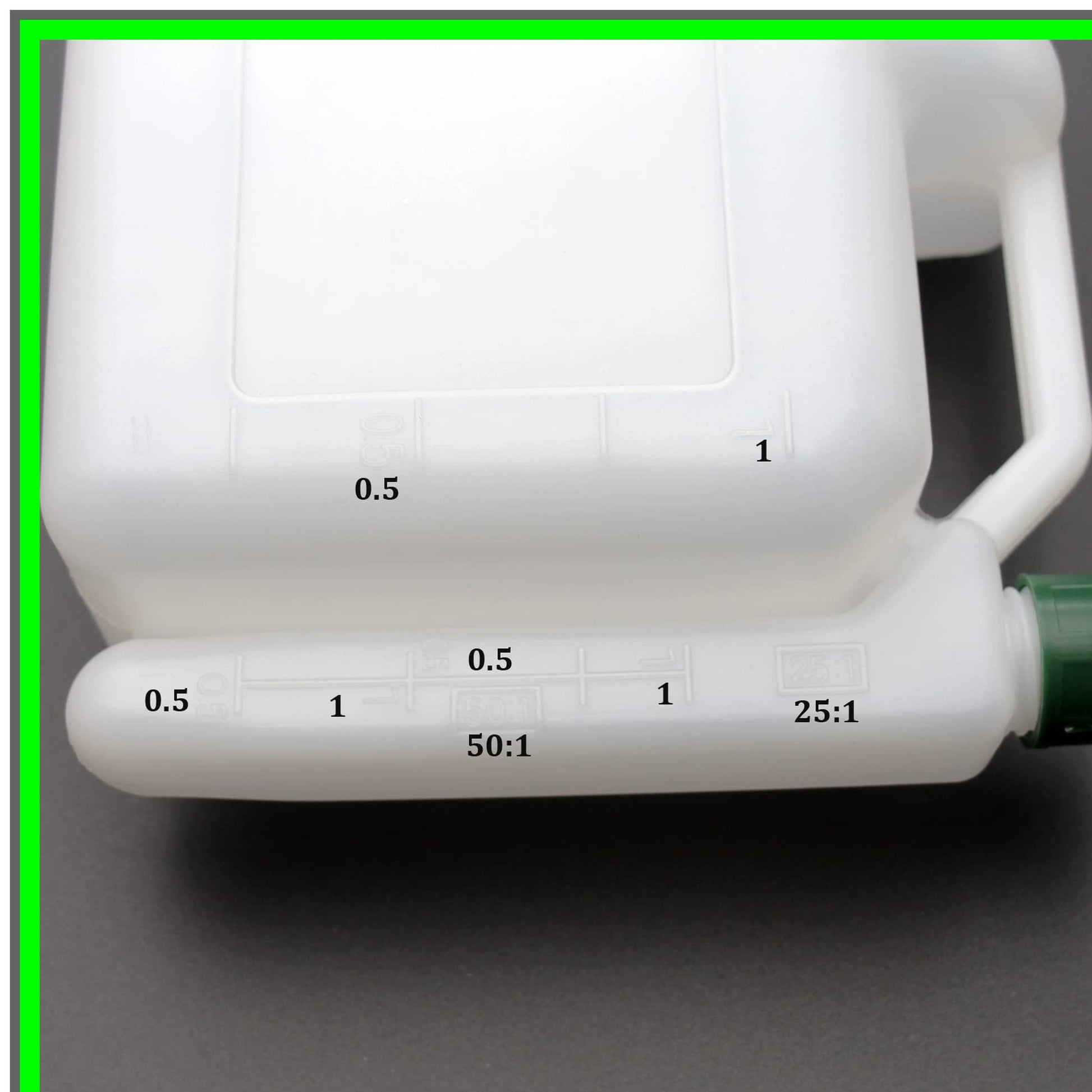 Introducing the ultimate solution for your fuel mixing needs: a dual-chamber container designed for precision and convenience. This innovative product features a spacious compartment for gasoline and a smaller section dedicated to engine oil, making it the perfect tool for enthusiasts and professionals alike. With clearly marked ratio scales on both vertical sides, achieving the ideal fuel mixture has never been easier. The gasoline section boasts a constant scale, allowing you to effortlessly measure the exact amount needed for your engine. The oil compartment offers two distinct ratios—25:1 and 50:1—ensuring compatibility with various 2-stroke engines. Each section is equipped with easy-to-read 1-liter and 0.5-liter markings, providing you with the flexibility to mix precisely the amount you require.To create a 25:1 mixture, simply follow these straightforward steps: First, locate the vertical scale for the 25:1 ratio. Next, pour 1 liter of 2-stroke oil into the designated section. Then, match that volume by adding 1 liter of gasoline to the corresponding side. Finally, secure the lid and tilt the container to allow the oil to flow into the gasoline chamber, ensuring a thorough mix. In just moments, you’ll have a perfectly blended 1-liter mixture ready for your engine.Crafted for durability and ease of use, this dual-chamber container is an essential addition to your toolkit. Whether you’re a weekend warrior or a seasoned mechanic, streamline your fuel preparation process and enhance your engine’s performance with this reliable mixing solution. Say goodbye to guesswork and hello to precision with every pour!