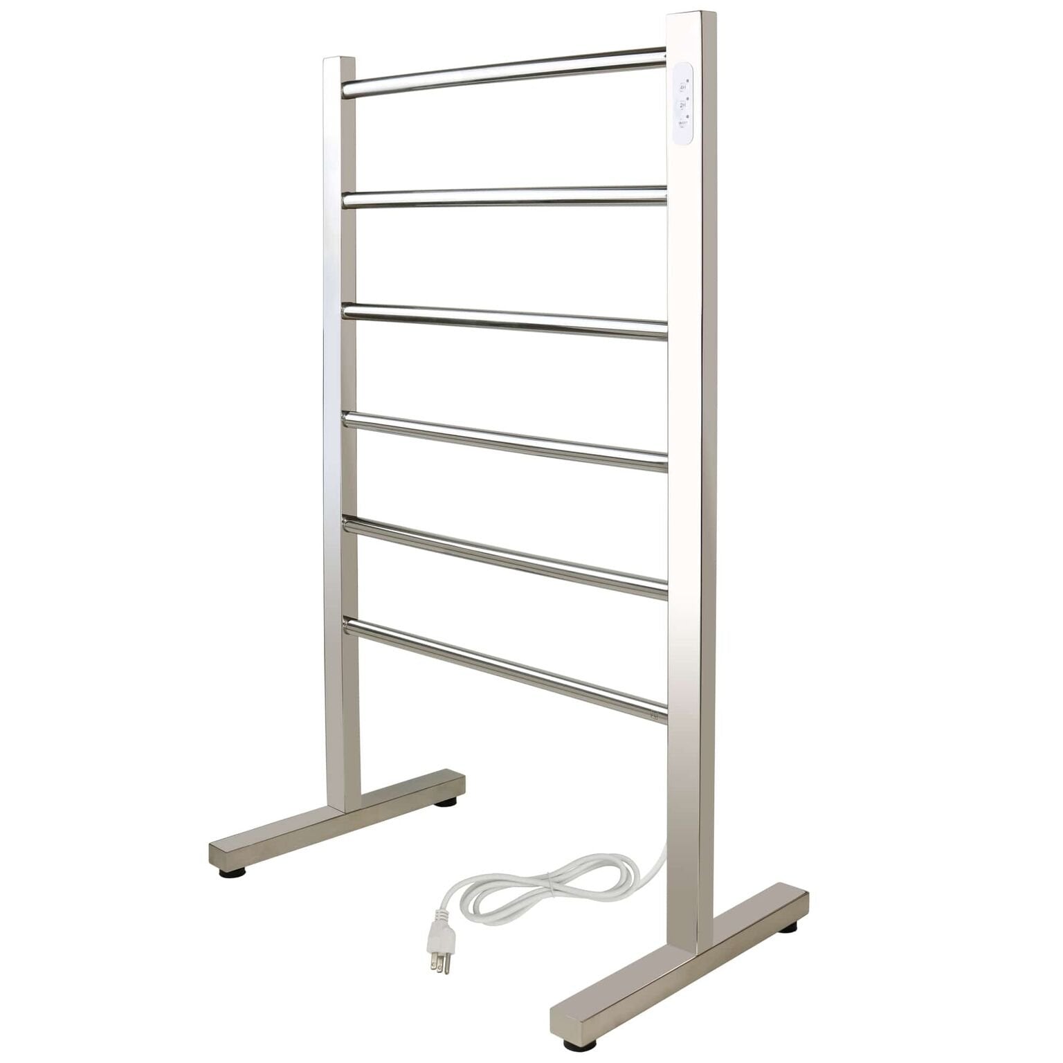 Warmly Yours 6-Bar Ibiza Freestanding Electric Heated Bath Towel Warmer Rack, Polished, Plug-in, Silver